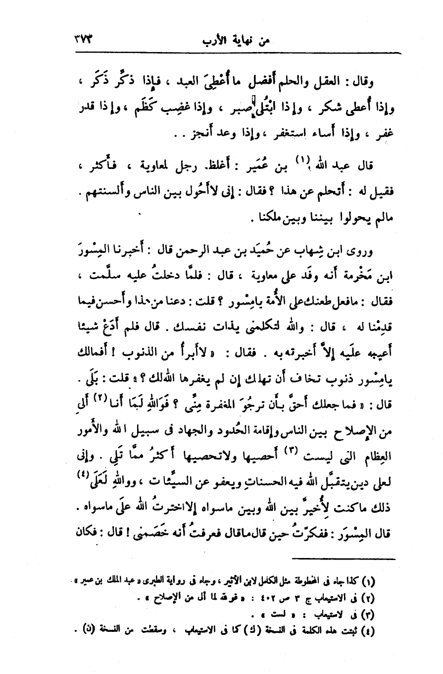 قال: «فما جعلك أحقّ بأن ترجو المغفرة منّى؟ فو الله لما أنا [2] ألى من الإصلاح بين الناس وإقامة الحدود والجهاد فى سبيل الله والأمور العظام التى ليست [3] أحصيها ولا تحصيها أكثر ممّا تلى. وإنى لعلى دين يتقبّل الله فيه الحسنات ويعفو عن السيّئات، وو الله لعلى [4] ذلك ما كنت لأخيرّ بين الله وبين ما سواه إلا اخترت الله على ما سواه.
