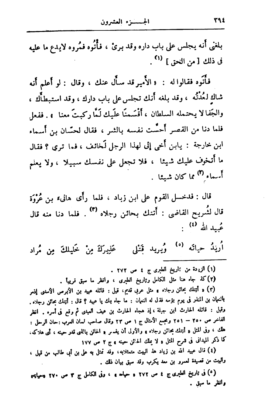 [4] قال عبيد الله بن زياد هذا البيت متمثلا به، وقد تمثل به على بن أبى طالب من قبل، والبيت من قصيدة لعمرو بن معد يكرب وقد سبق بيان ذلك.