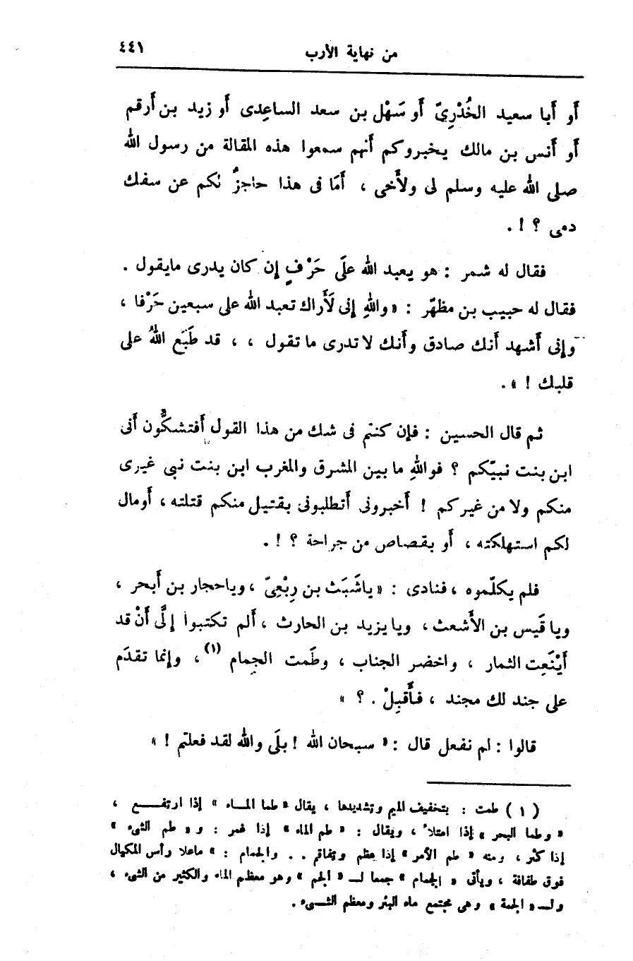 فقال له شمر: هو يعبد الله على حرف إن كان يدرى ما يقول.