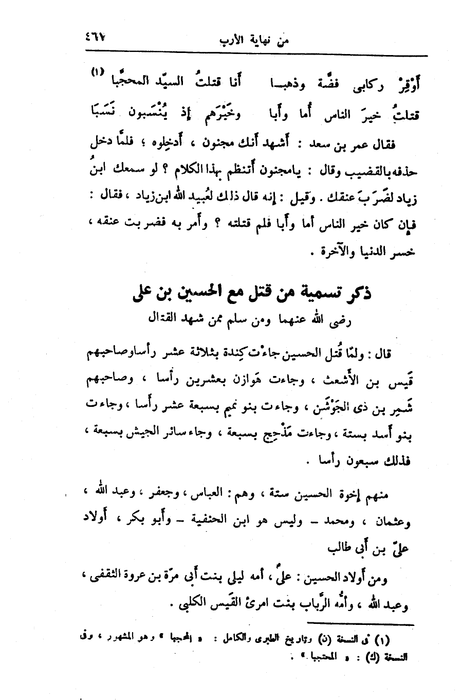 ذكر تسمية من قتل مع الحسين بن على رضى الله عنهما ومن سلم ممن شهد القتال