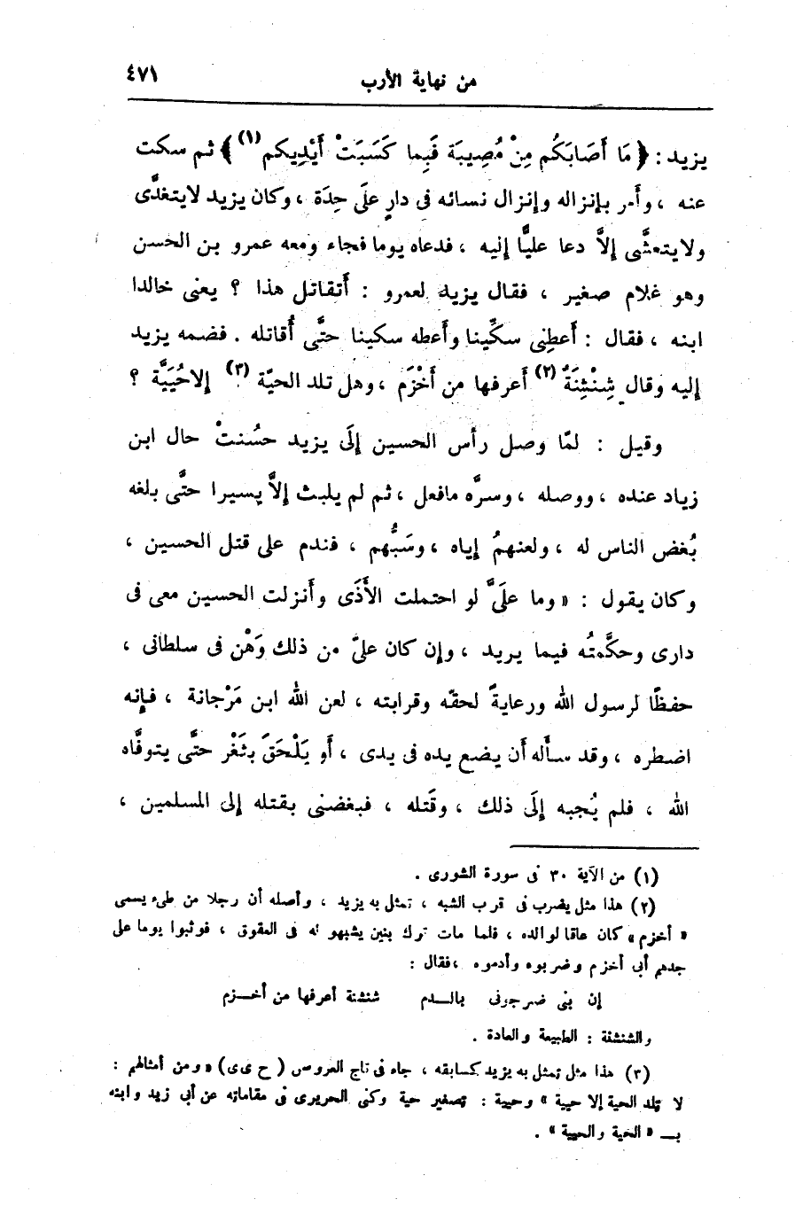 [3] هذا مثل تمثل به يزيد كسابقه، جاء فى تاج العروس (ح ى ى) «ومن أمثالهم: