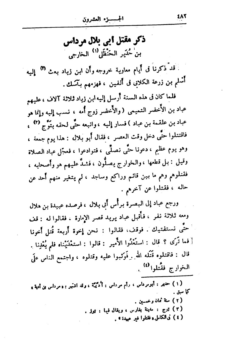 ذكر مقتل أبى بلال مرداس بن حدير الحنظلى [1] الخارجى