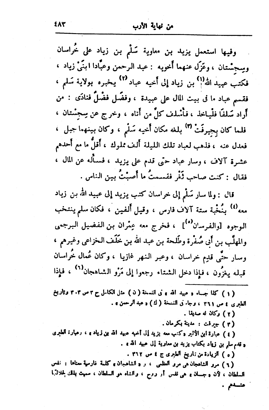 [4] عبارة ابن الأثير «كتب معه يزيد إلى أخيه عبيد الله بن زياد» ، وعبارة الطبرى «قدم سلم بن زياد بكتاب يزيد بن معاوية إلى عبيد الله» .