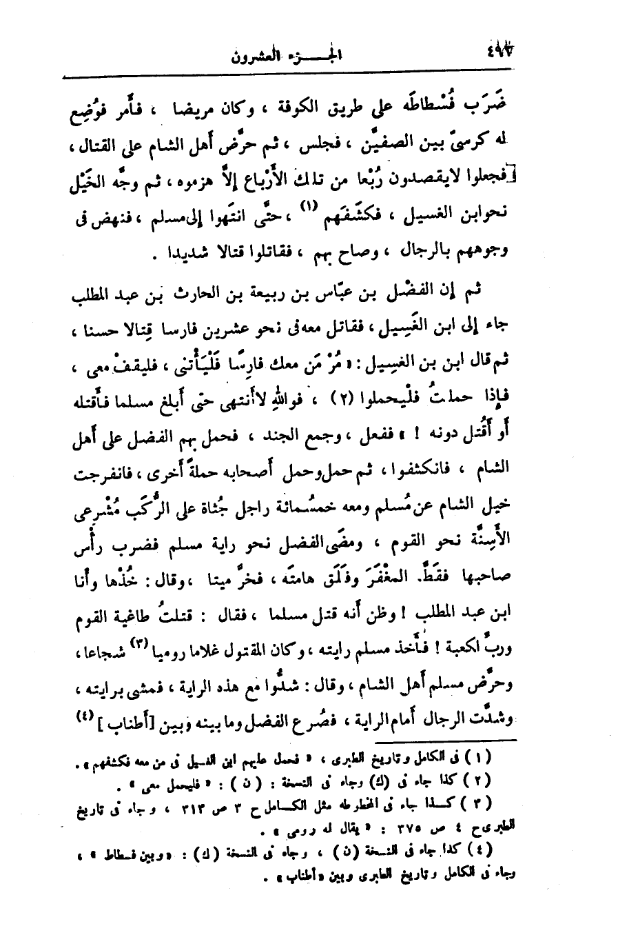 [4] كذا جاء فى النسخة (ن) ، وجاء فى النسخة (ك) : «وبين فسطاط» ، وجاء فى الكامل وتاريخ الطبرى وبين «أطناب» .