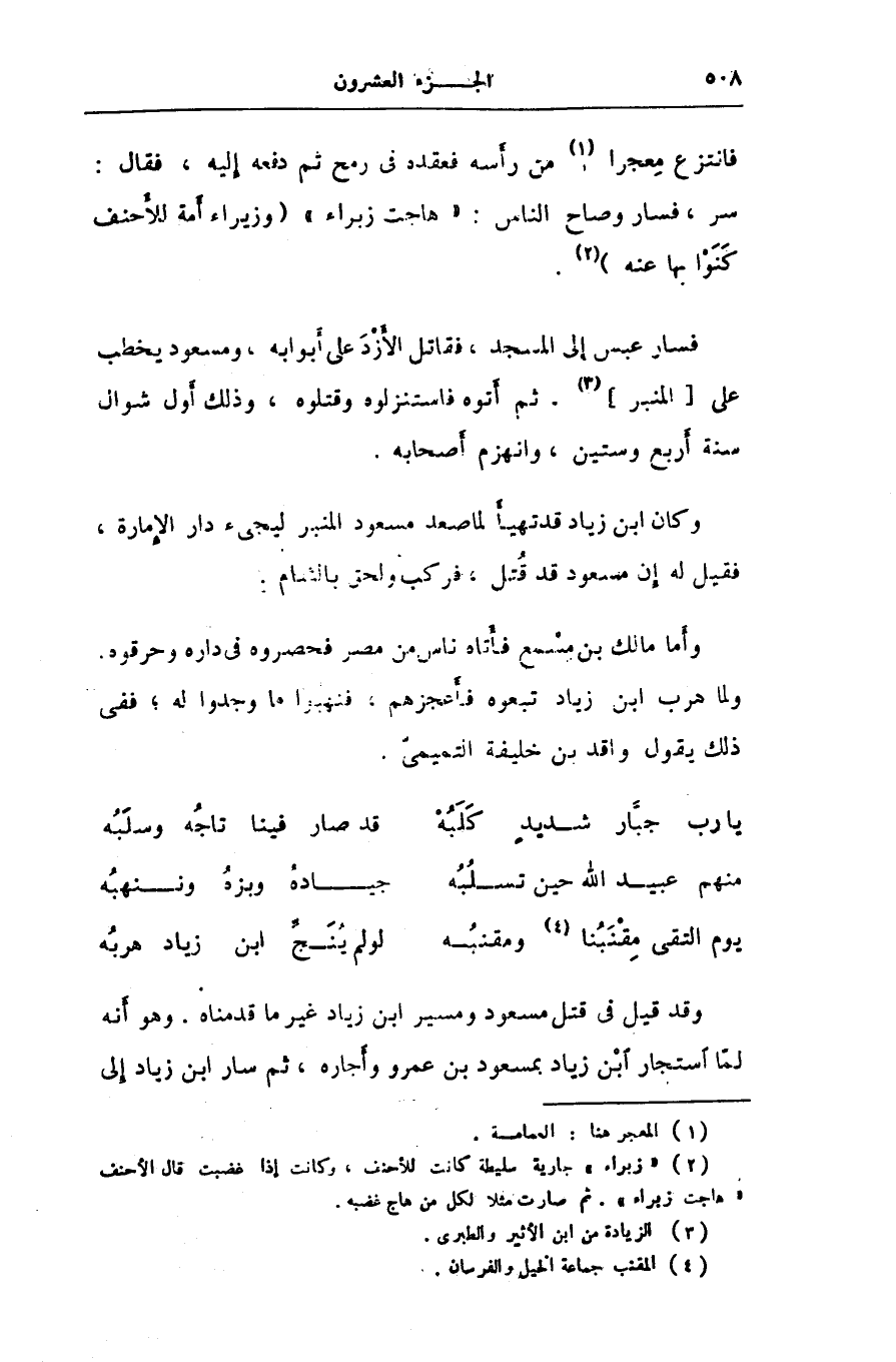 سر، فسار وصاح الناس: «هاجت زبراء» (وزيراء أمة للأحنف كنوا بها عنه) [2] .