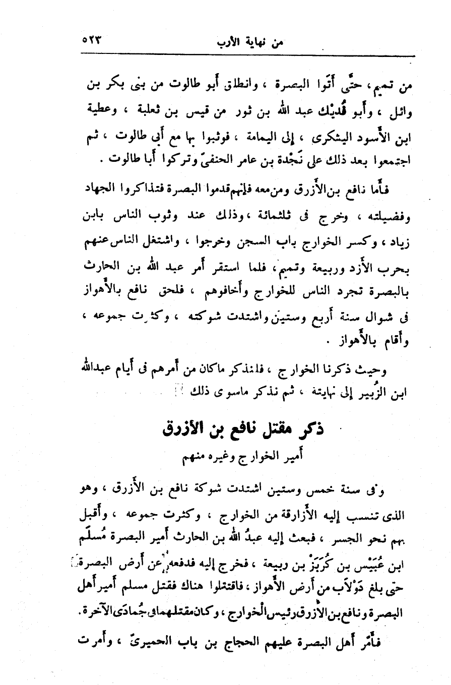 ذكر مقتل نافع بن الأزرق أمير الخوارج وغيره منهم