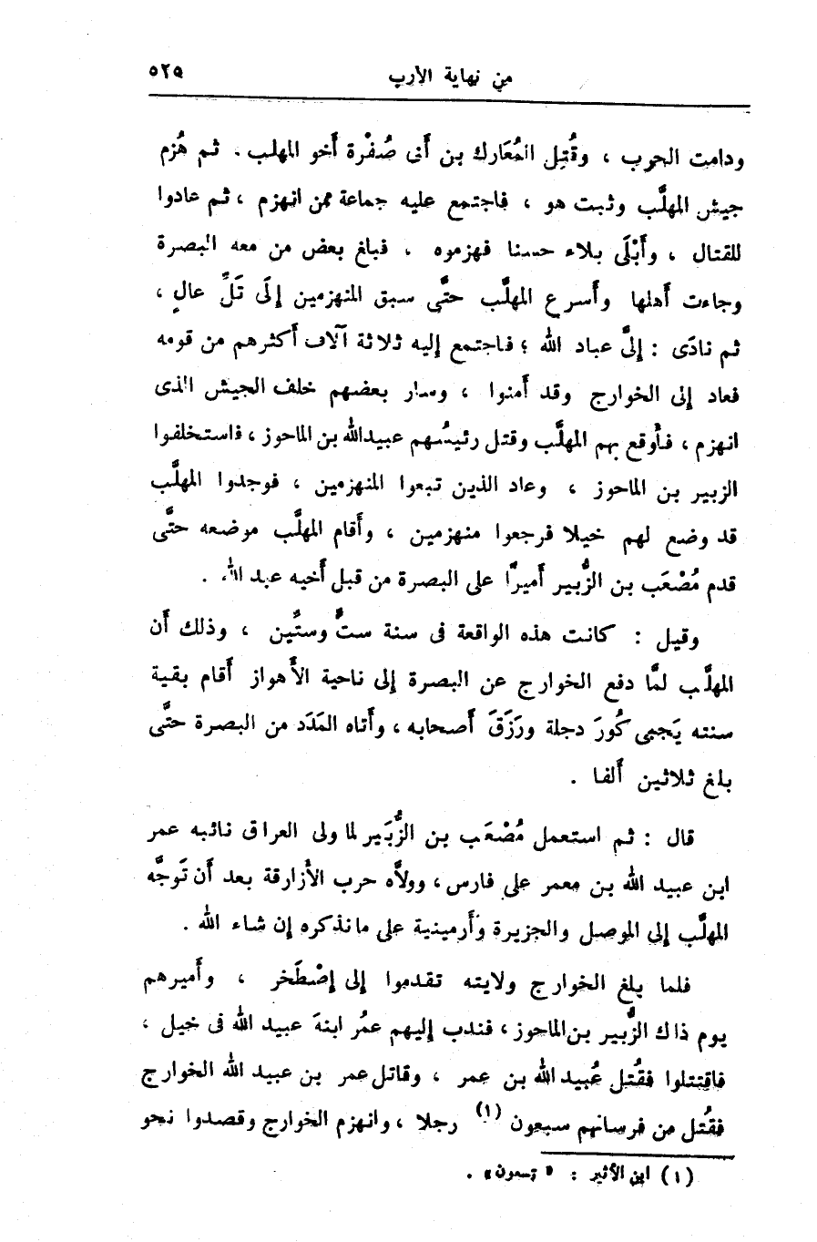 قال: ثم استعمل مصعب بن الزّبير لما ولى العراق نائبه عمر ابن عبيد الله بن معمر على فارس، وولّاه حرب الأزارقة بعد أن توجّه المهلّب إلى الموصل والجزيرة وأرمينية على ما نذكره إن شاء الله.