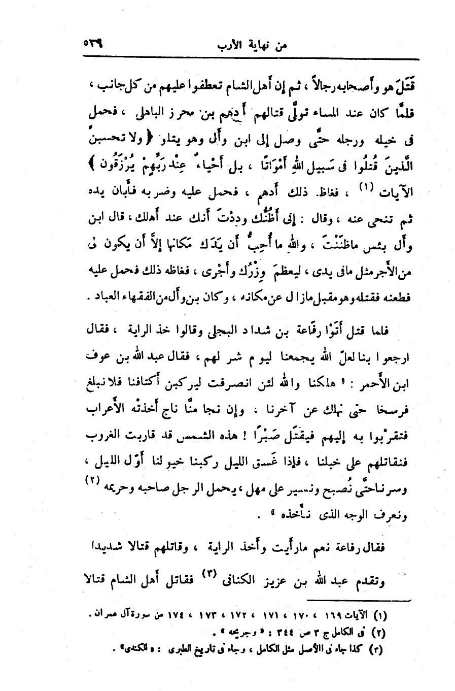 فقال رفاعة نعم ما رأيت وأخذ الراية، وقاتله قتالا شديدا وتقدم عبد الله بن عزيز الكنانى [3] فقاتل أهل الشام قتالا