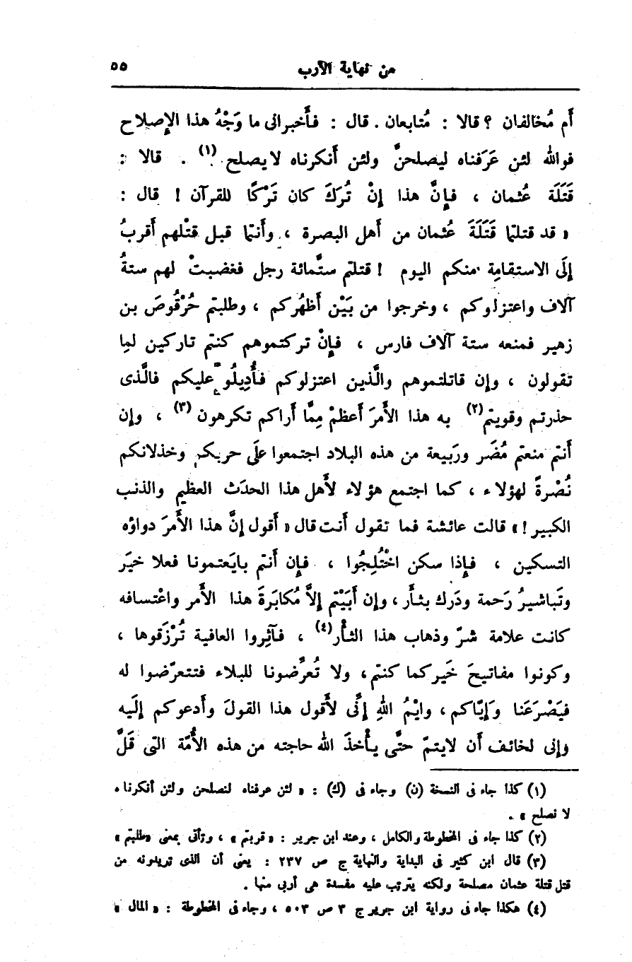 [3] قال ابن كثير فى البداية والنهاية ج ص 237: يعنى أن الذى تريدونه من قتل قتلة عثمان مصلحة ولكنه يترتب عليه مفسدة هى أربى منها.
