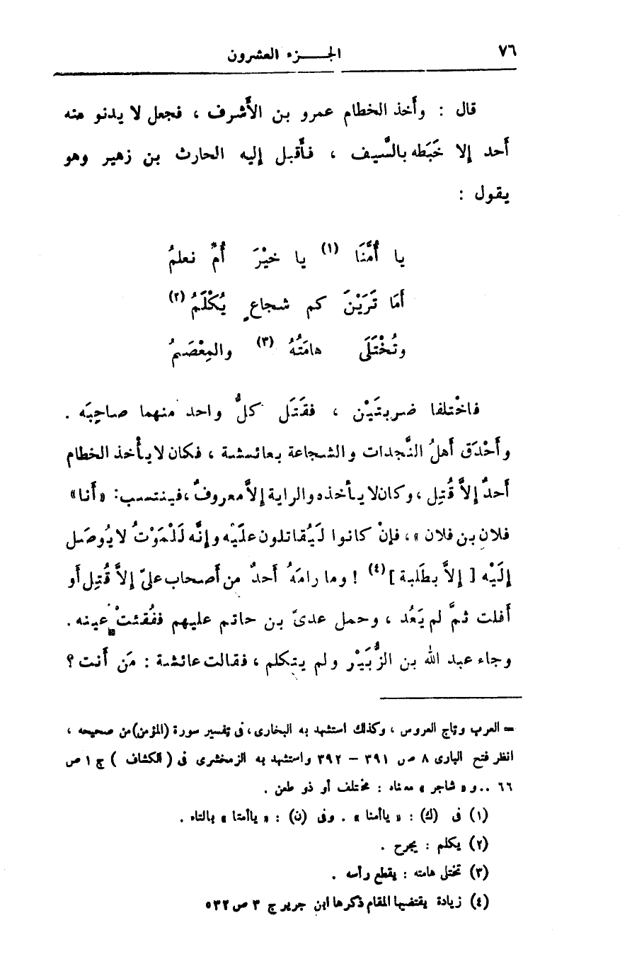 يا أمّنا [1] يا خير أمّ نعلم ... أما ترين كم شجاع يكلم [2]