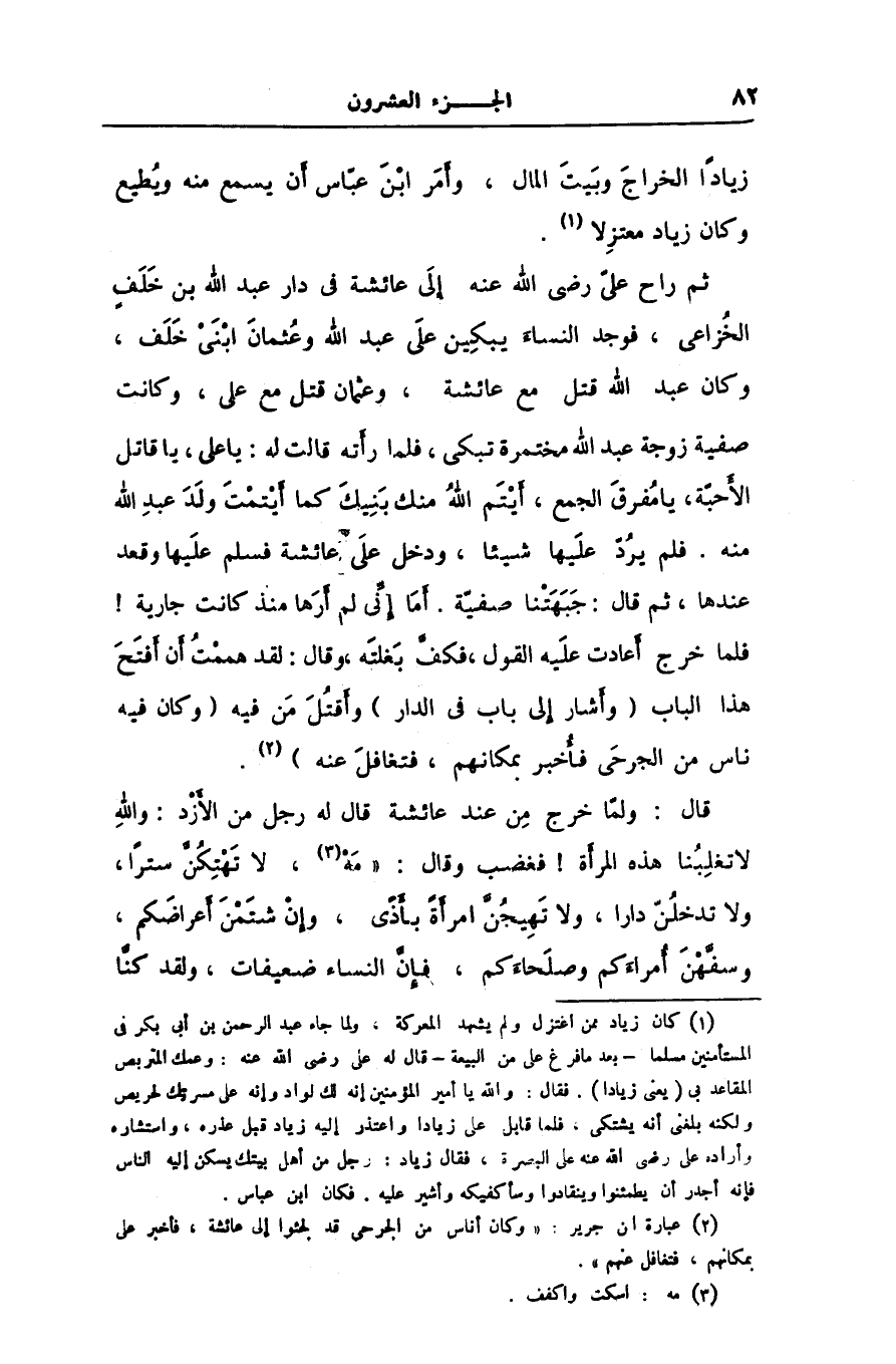 [2] عبارة ابن جرير: «وكان أناس من الجرحى قد لجئوا إلى عائشة، فأخبر على بمكانهم، فتغافل عنهم» .