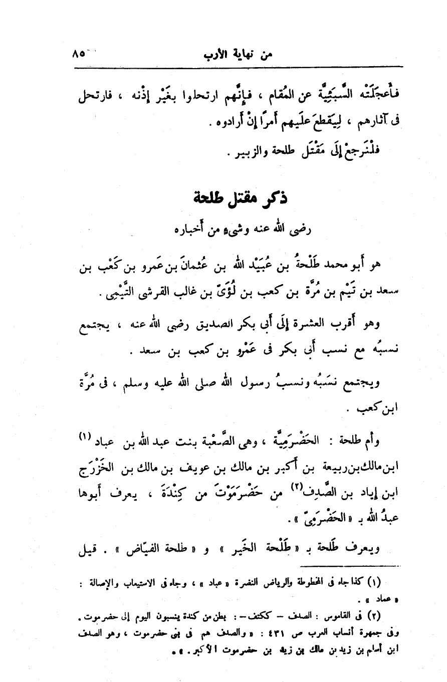 وأم طلحة: الحضرميّة، وهى الصّعبة بنت عبد الله بن عباد [1] ابن مالك بن ربيعة بن أكبر بن مالك بن عويف بن مالك بن الخزرج ابن إياد بن الصّدف [2] من حضرموت من كندة، يعرف أبوها عبد الله ب «الحضرمىّ» .