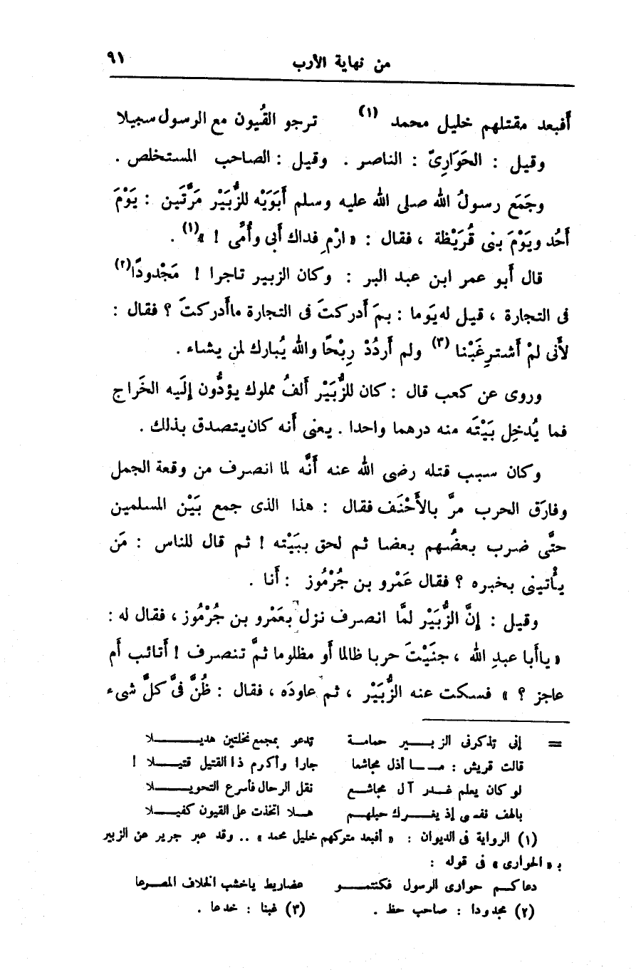 [2] الرواية فى الديوان: «أفبعد متركهم خليل محمد» .. وقد عبر جرير عن الزبير ب «الحوارى» فى قوله: