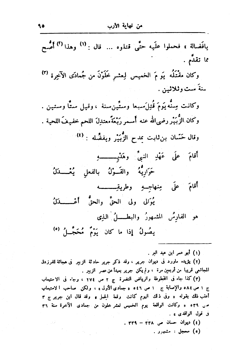 [2] يؤيده ما ورد فى ديوان جرير، وقد ذكر جرير حادثة الزبير فى هجائة للفرزدق المجاشعى قريبا من أربعين مرة، ولم يكن جرير بعيدا عن عصر الزبير.