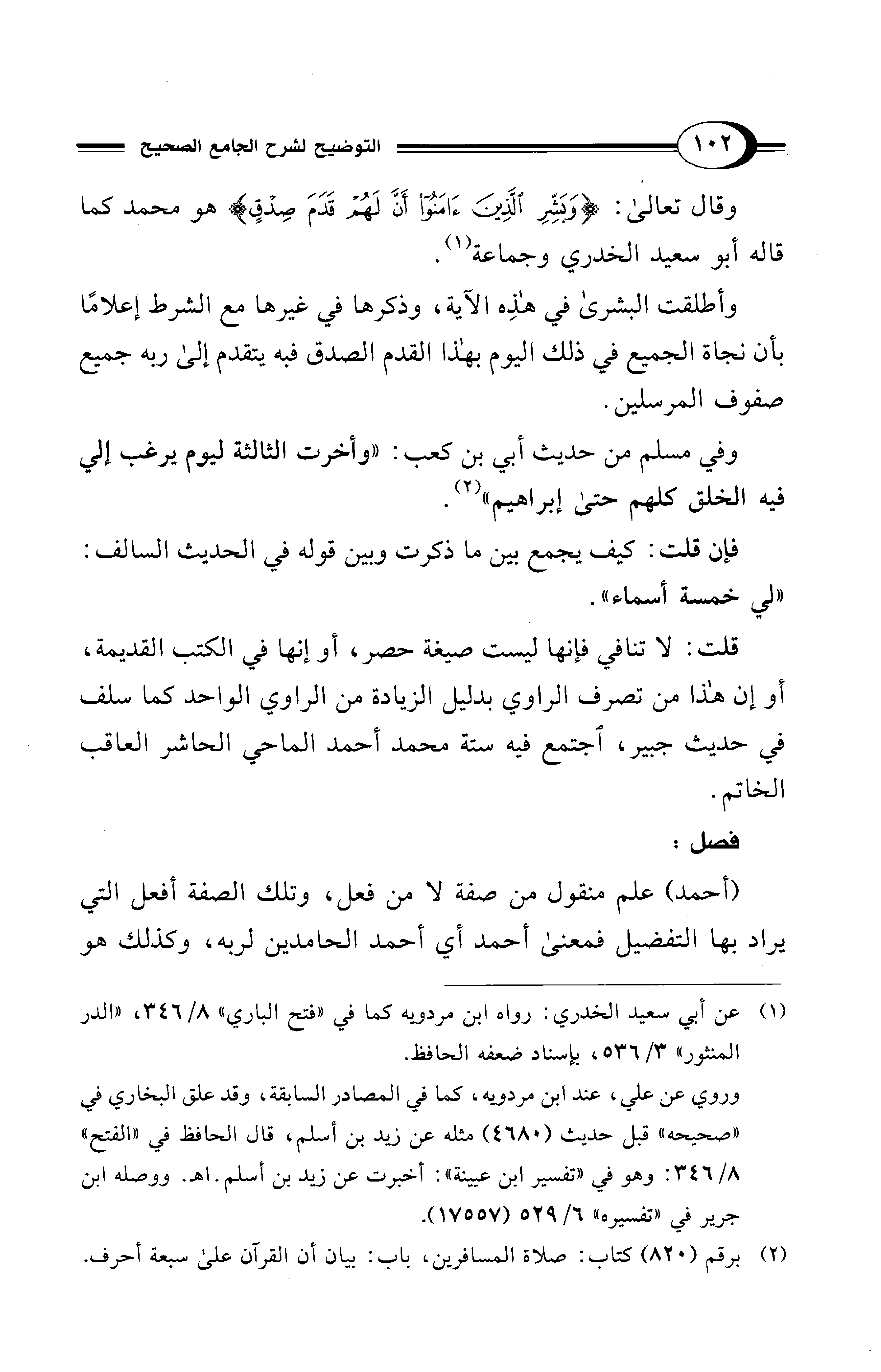 (أحمد) علم منقول من صفة لا من فعل، وتلك الصفة أفعل التي يراد بها التفضيل فمعنى أحمد أي أحمد الحامدين لربه، وكذلك هو