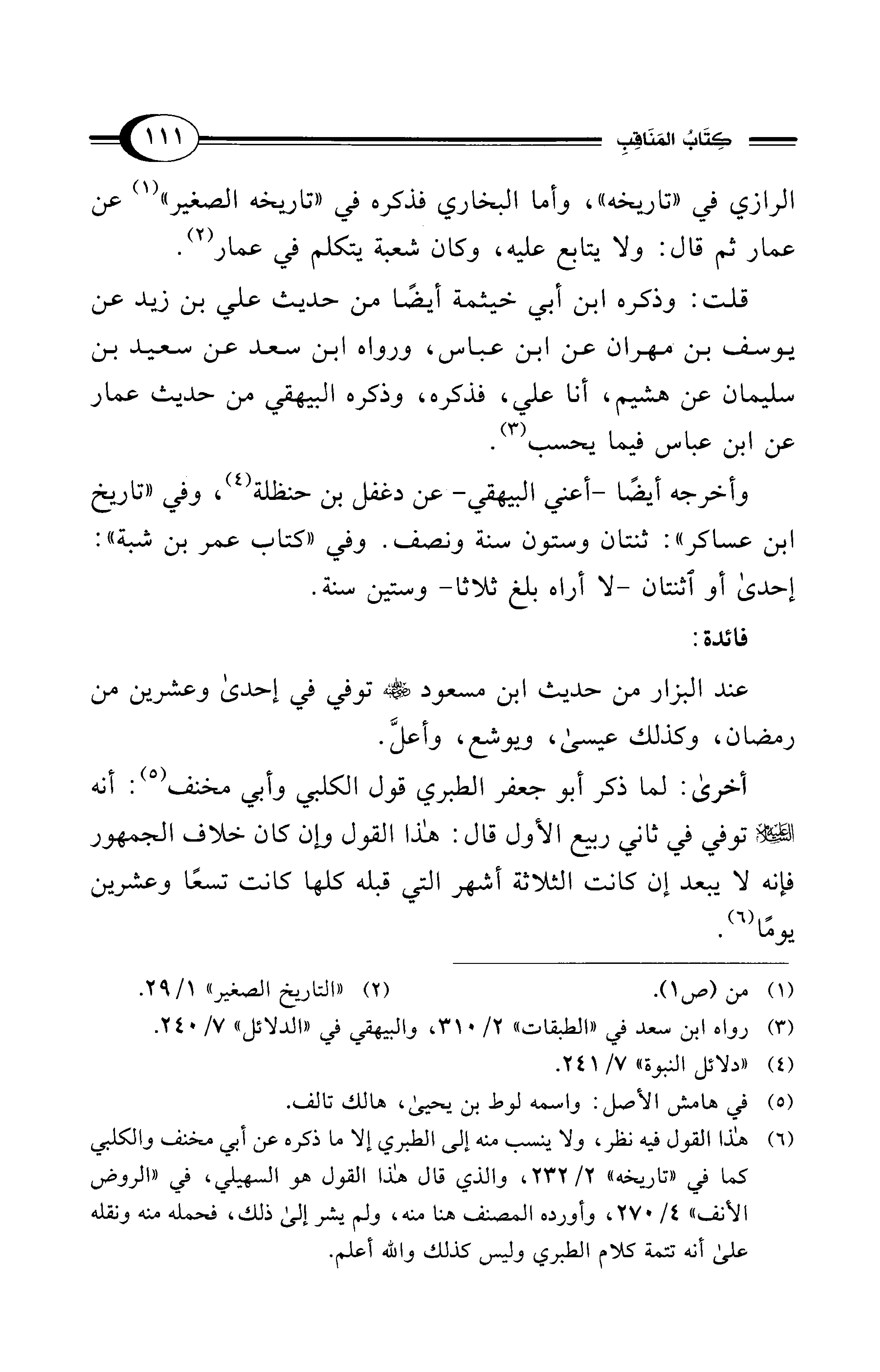 (¬6) هذا القول فيه نظر، ولا ينسب منه إلى الطبري إلا ما ذكره عن أبي مخنف والكلبي كما في "تاريخه" 2/ 232، والذي قال هذا القول هو السهيلي، في "الروض الأنف" 4/ 270، وأورده المصنف هنا منه، ولم يشر إلى ذلك، فحمله منه ونقله على أنه تتمة كلام الطبري وليس كذلك والله أعلم.