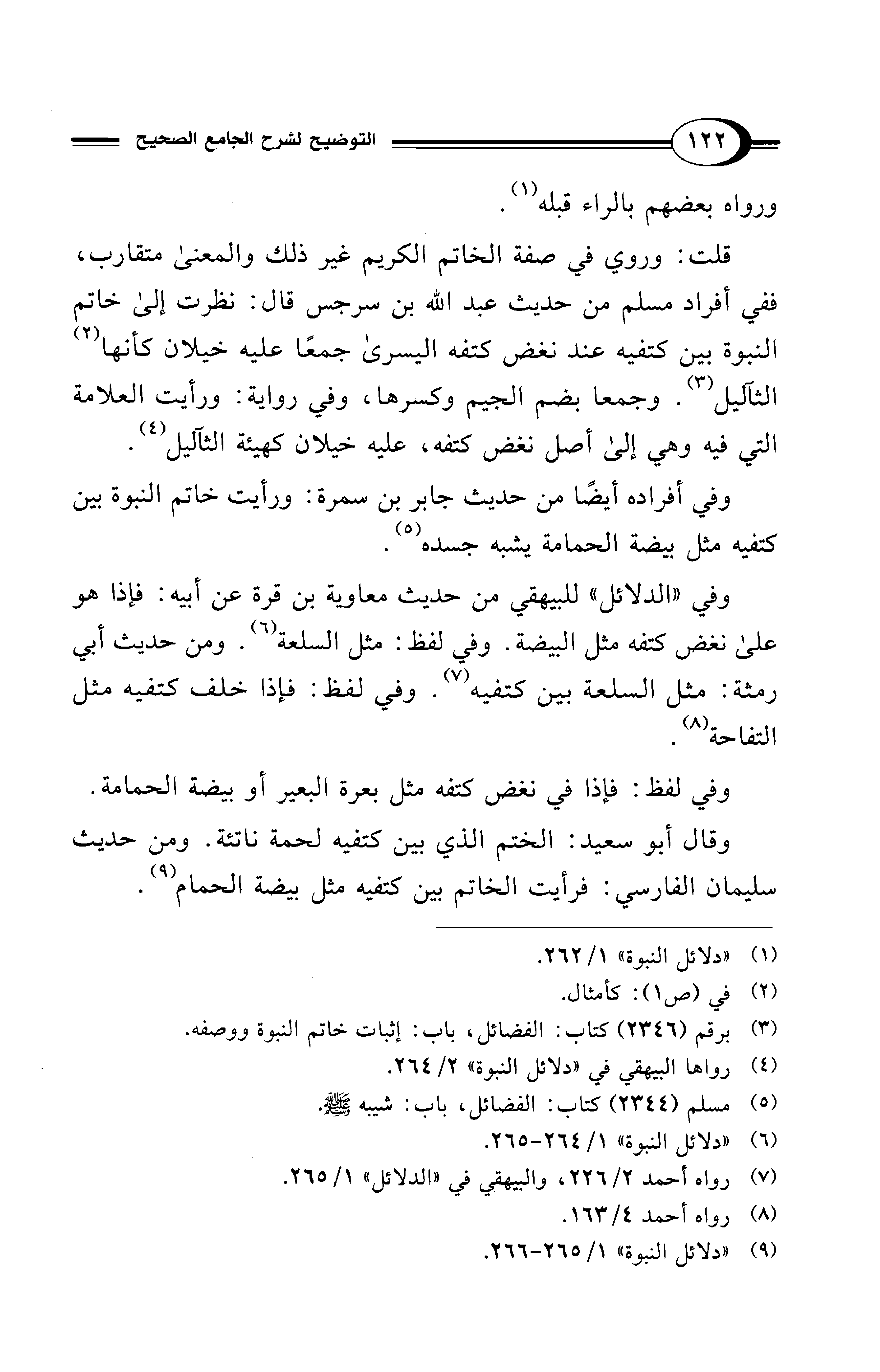 (¬3) برقم (2346) كتاب: الفضائل، باب: إثبات خاتم النبوة ووصفه.