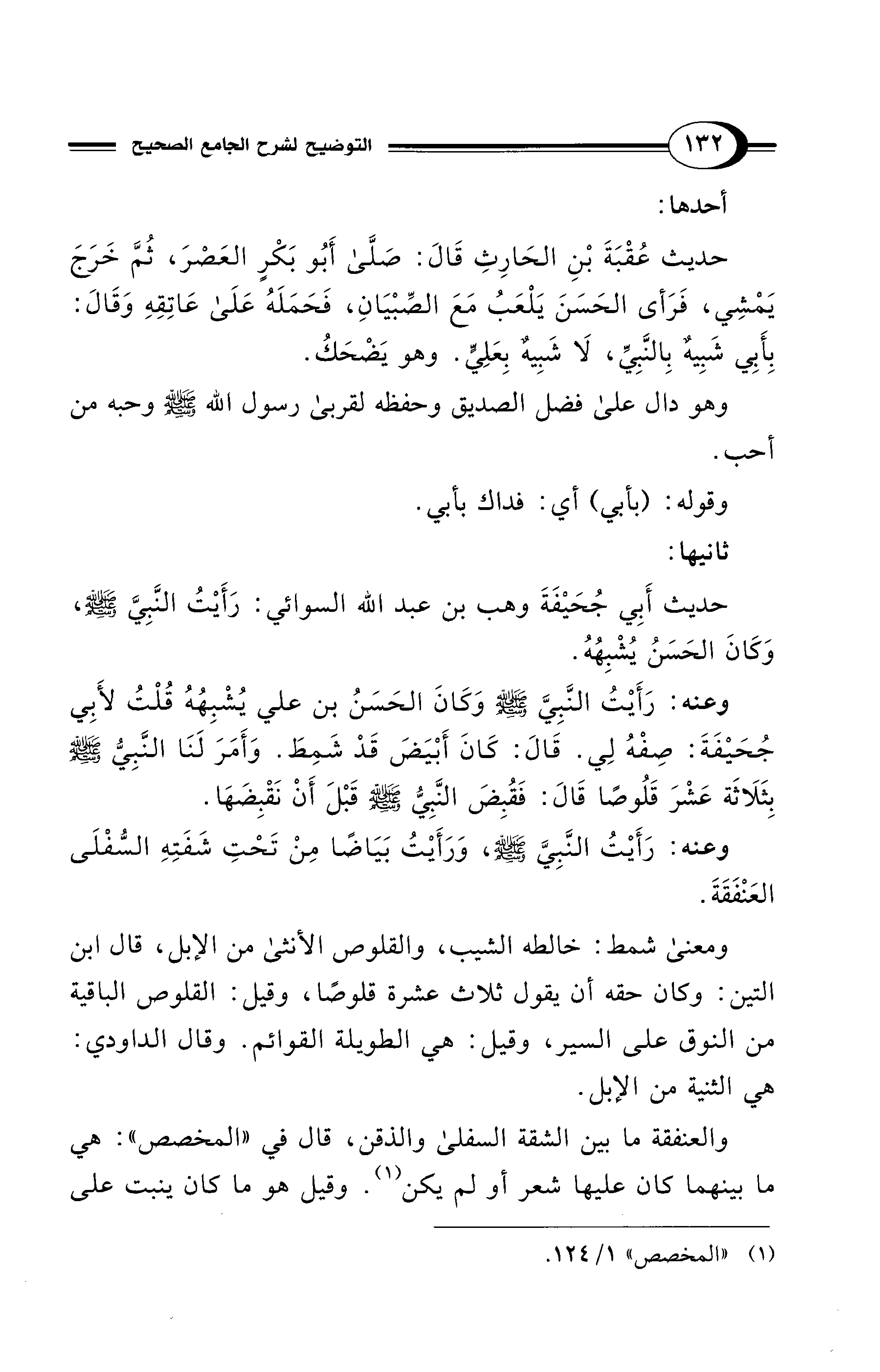 حديث أَبِي جُحَيْفَةَ وهب بن عبد الله السوائي: رَأَيْتُ النَّبِيَّ - صلى الله عليه وسلم -، وَكَانَ الحَسَنُ يُشْبِهُهُ.