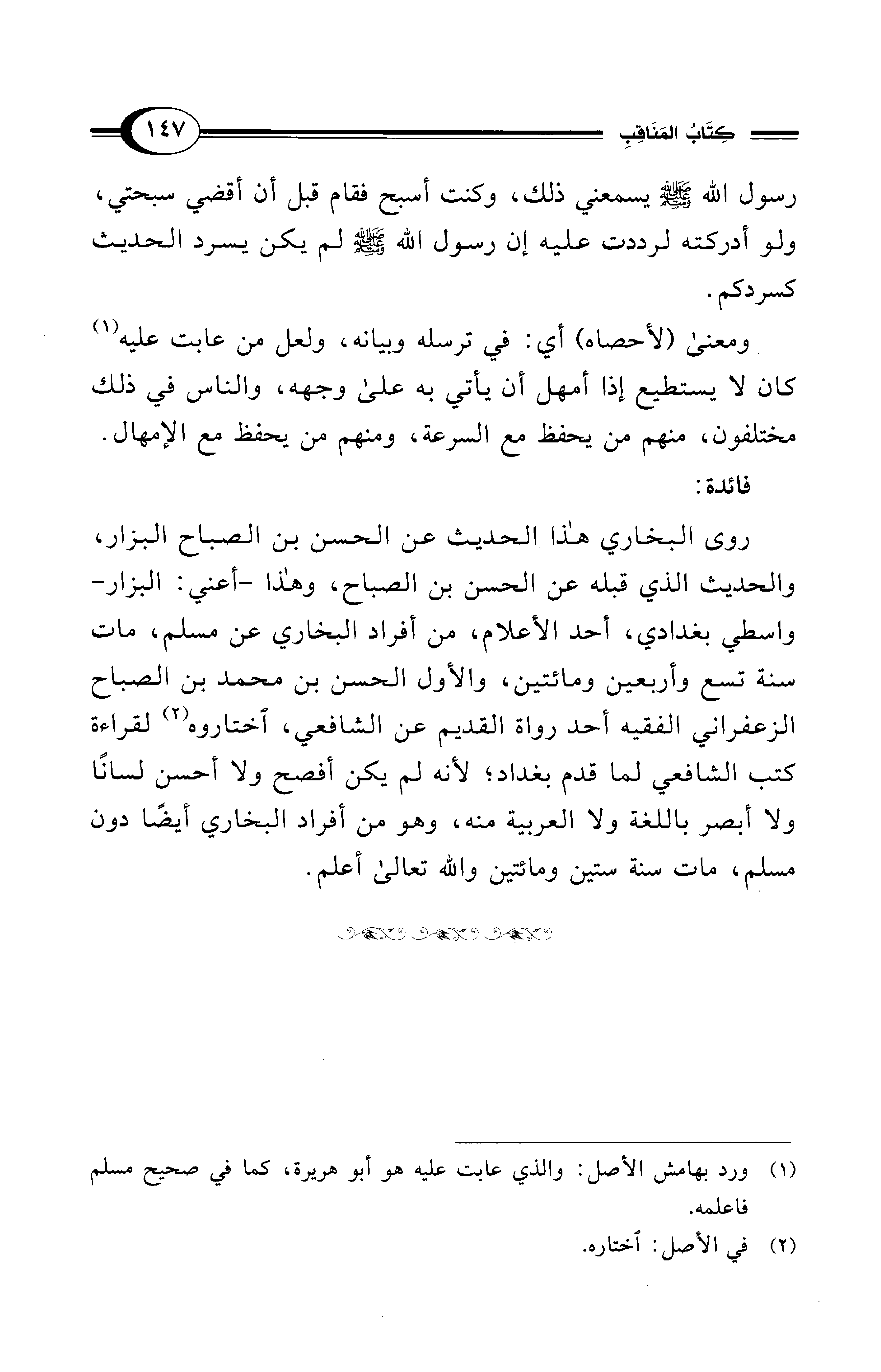 روى البخاري هذا الحديث عن الحسن بن الصباح البزار، والحديث الذي قبله عن الحسن بن الصباح، وهذا -أعني: البزار- واسطي بغدادي، أحد الأعلام، من أفراد البخاري عن مسلم، مات سنة تسع وأربعين ومائتين، والأول الحسن بن محمد بن الصباح الزعفراني الفقيه أحد رواة القديم عن الشافعي، اختاروه (¬2) لقراءة كتب الشافعي لما قدم بغداد؛ لأنه لم يكن أفصح ولا أحسن لسانًا ولا أبصر باللغة ولا العربية منه، وهو من أفراد البخاري أيضًا دون مسلم، مات سنة ستين ومائتين والله تعالى أعلم.