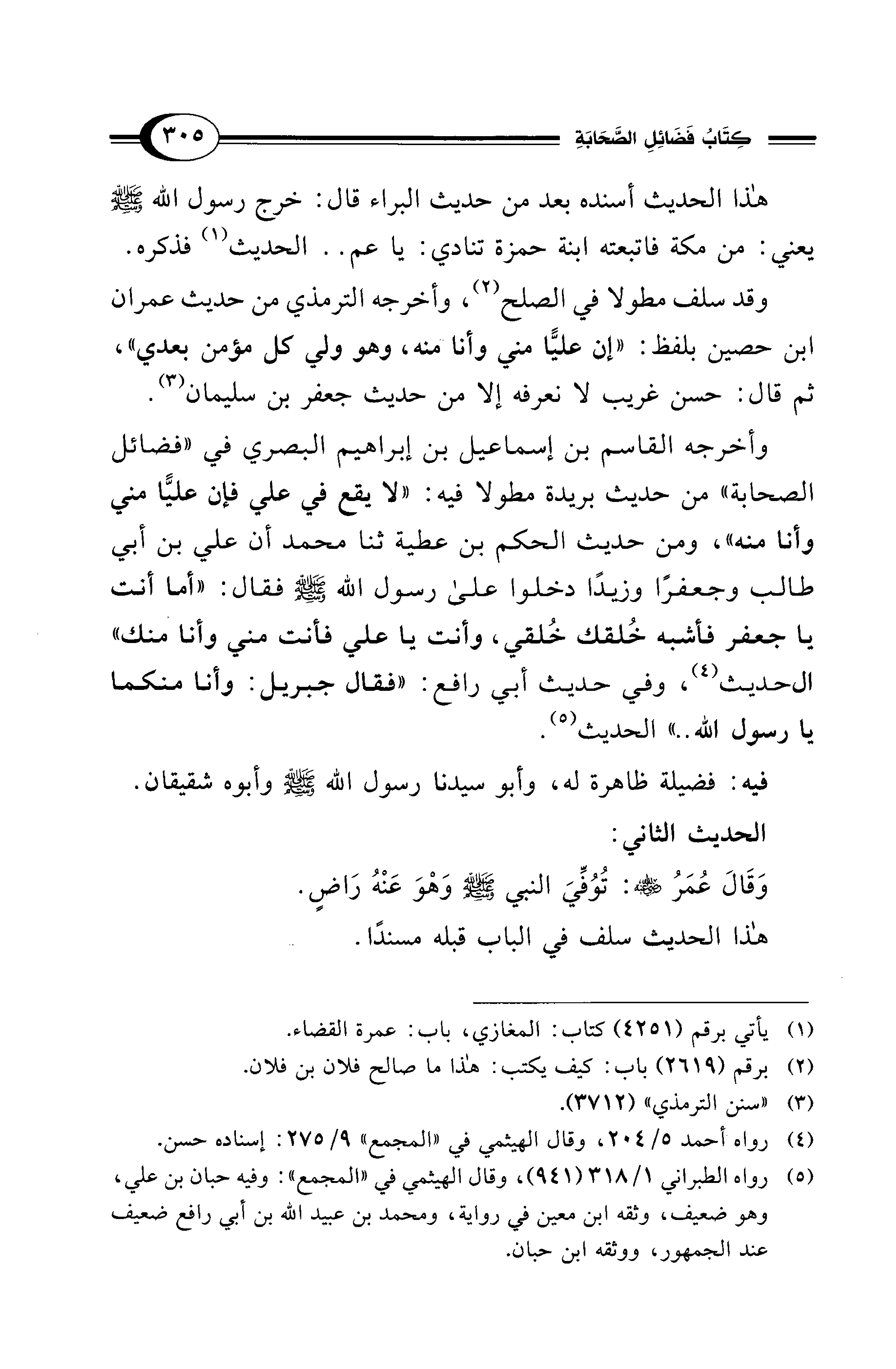 هذا الحديث أسنده بعد من حديث البراء قال: خرج رسول الله - صلى الله عليه وسلم - يعني: من مكة فاتبعته ابنة حمزة تنادي: يا عم .. الحديث (¬1) فذكره.