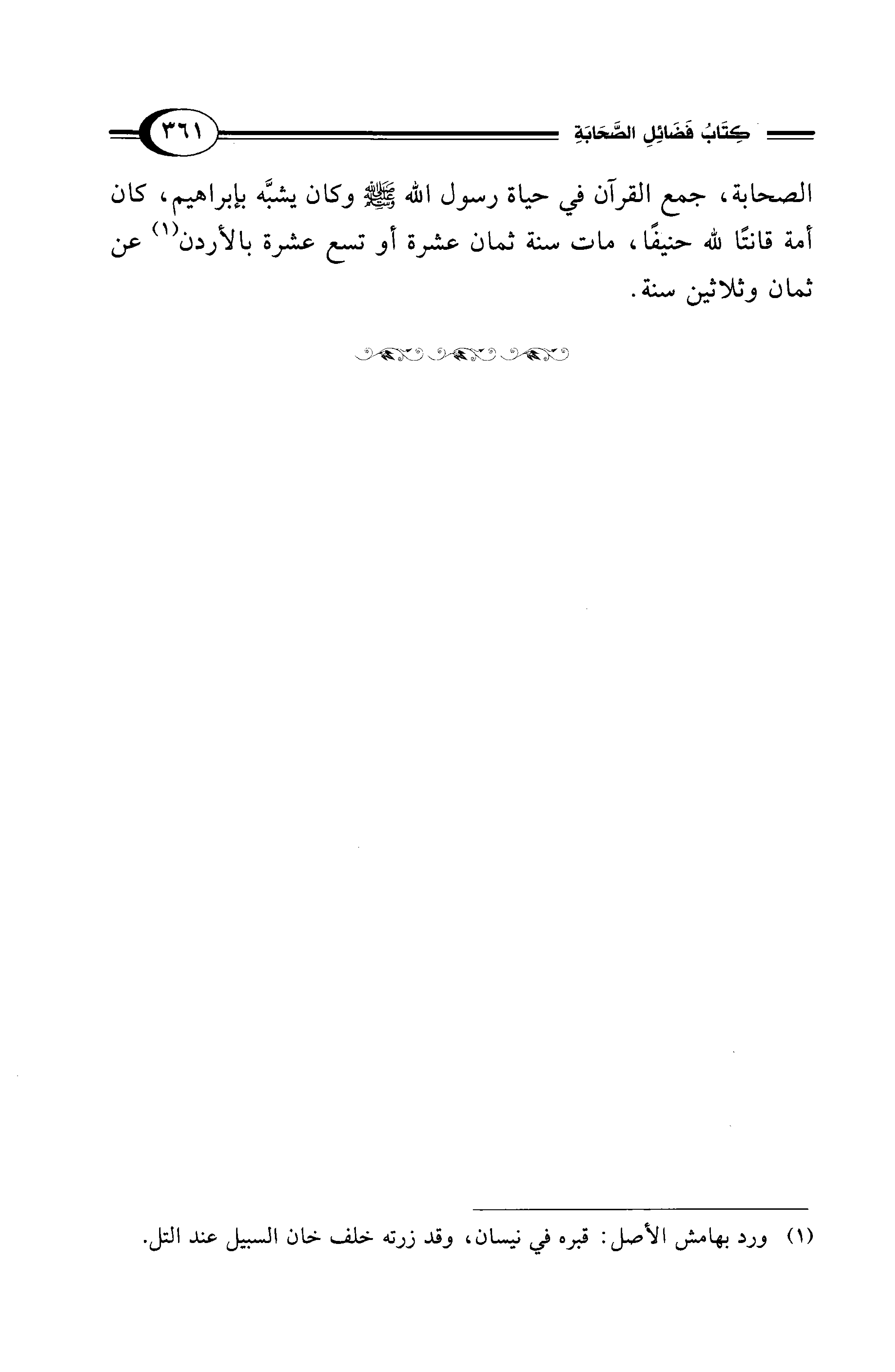 الصحابة، جمع القرآن في حياة رسول الله - صلى الله عليه وسلم - وكان يشبَّه بإبراهيم، كان أمة قانتًا لله حنيفًا، مات سنة ثمان عشرة أو تسع عشرة بالأردن (¬1) عن ثمان وثلاثين سنة.