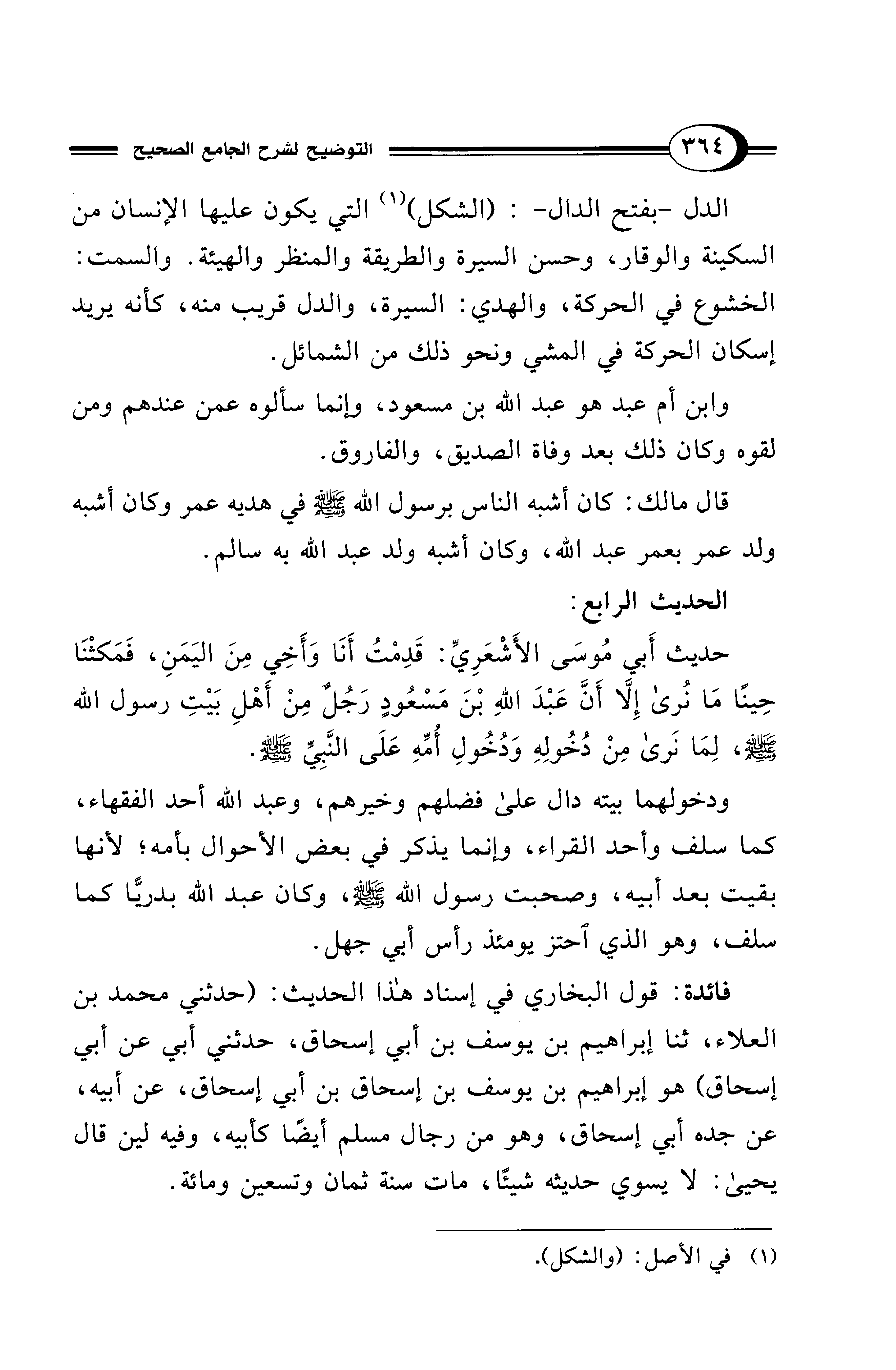الدل -بفتح الدال-: (الشكل) (¬1) التي يكون عليها الإنسان من السكينة والوقار، وحسن السيرة والطريقة والمنظر والهيئة. والسمت: الخشوع في الحركة، والهدي: السيرة، والدل قريب منه، كأنه يريد إسكان الحركة في المشي ونحو ذلك من الشمائل.