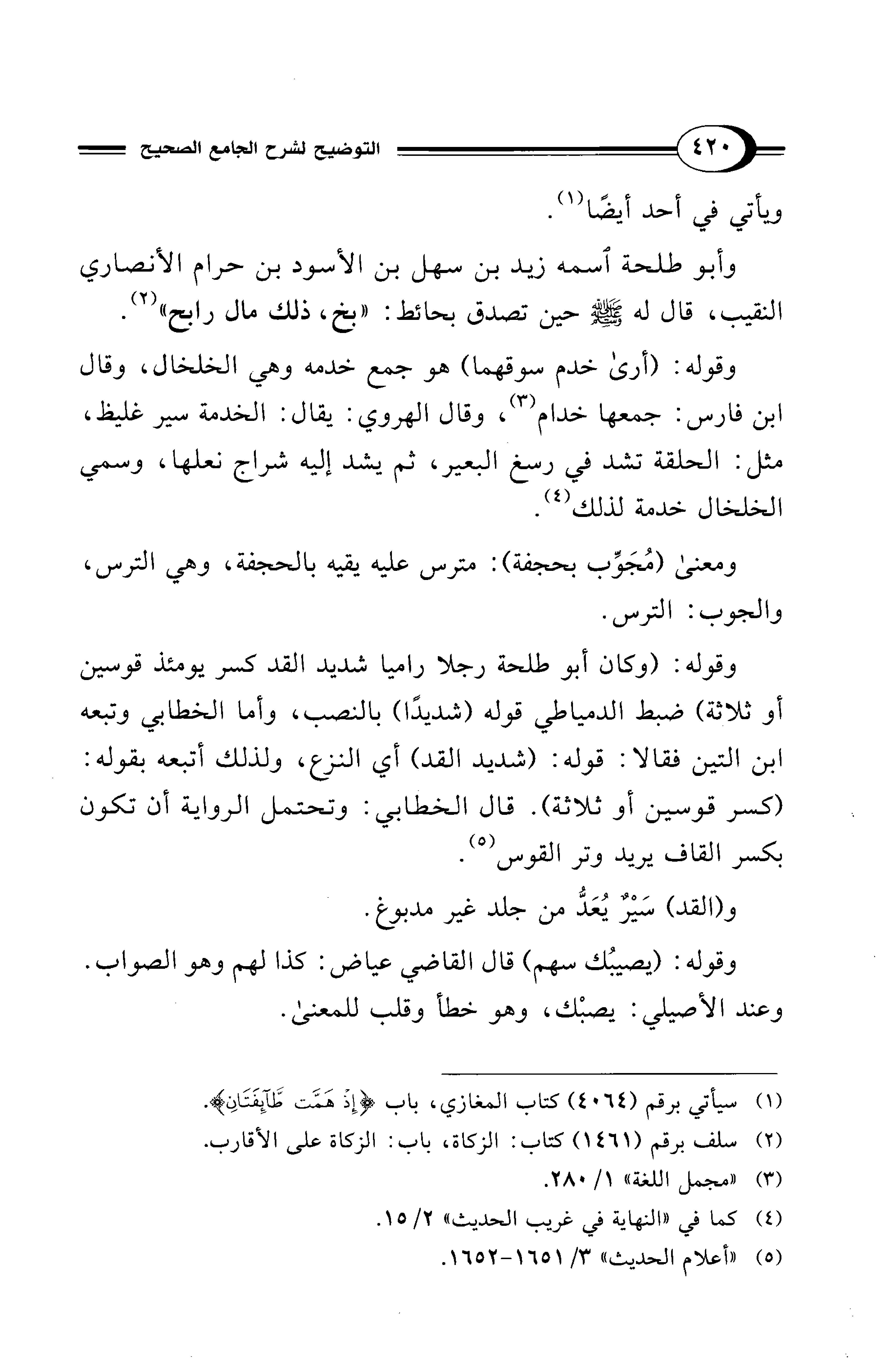 وأبو طلحة اسمه زيد بن سهل بن الأسود بن حرام الأنصاري النقيب، قال له - صلى الله عليه وسلم - حين تصدق بحائط: "بخ، ذلك مال رابح" (¬2).