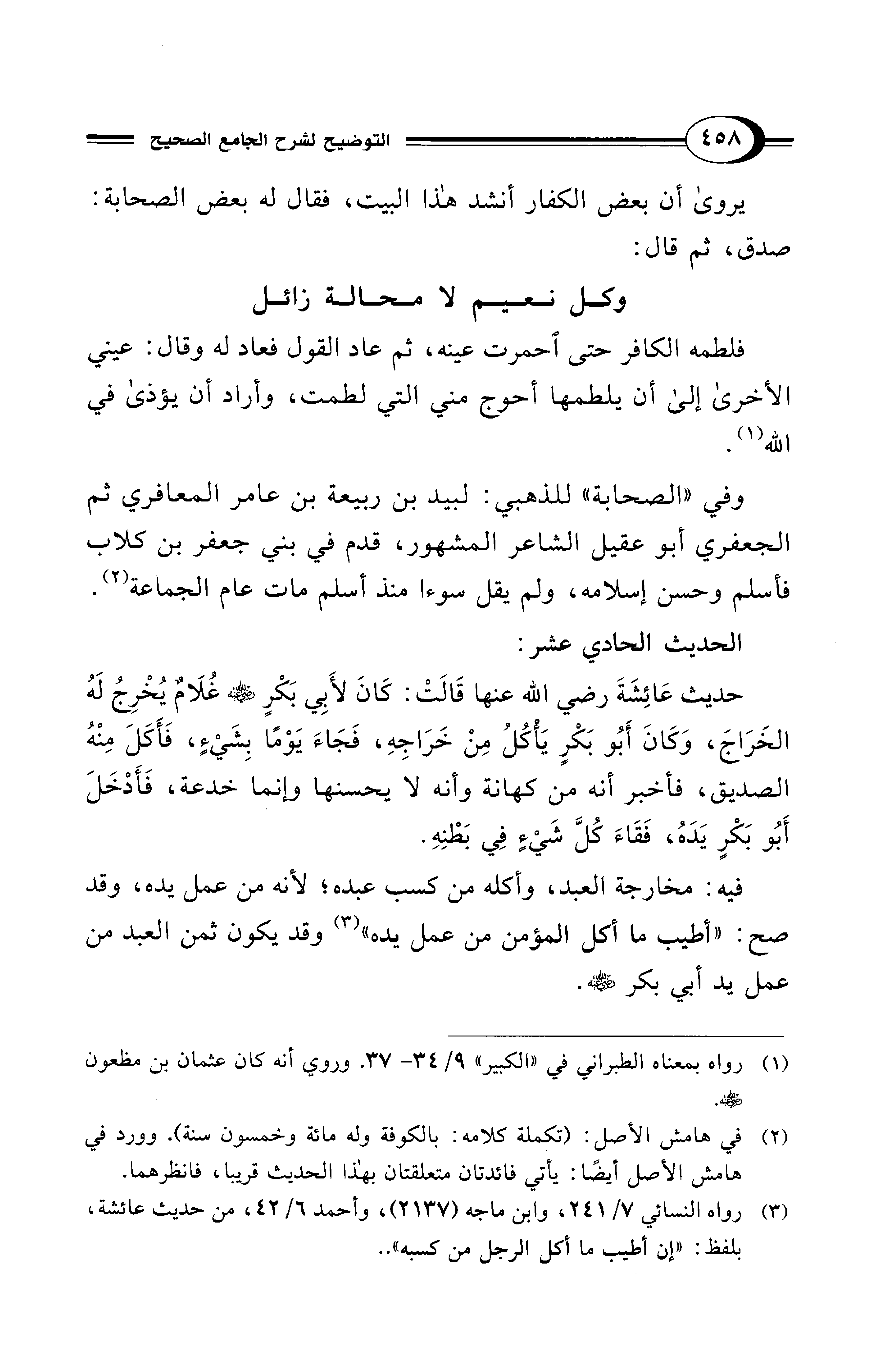 يروكا أن بعض الكفار أنشد هذا البيت، فقال له بعض الصحابة: صدق، ثم قال: