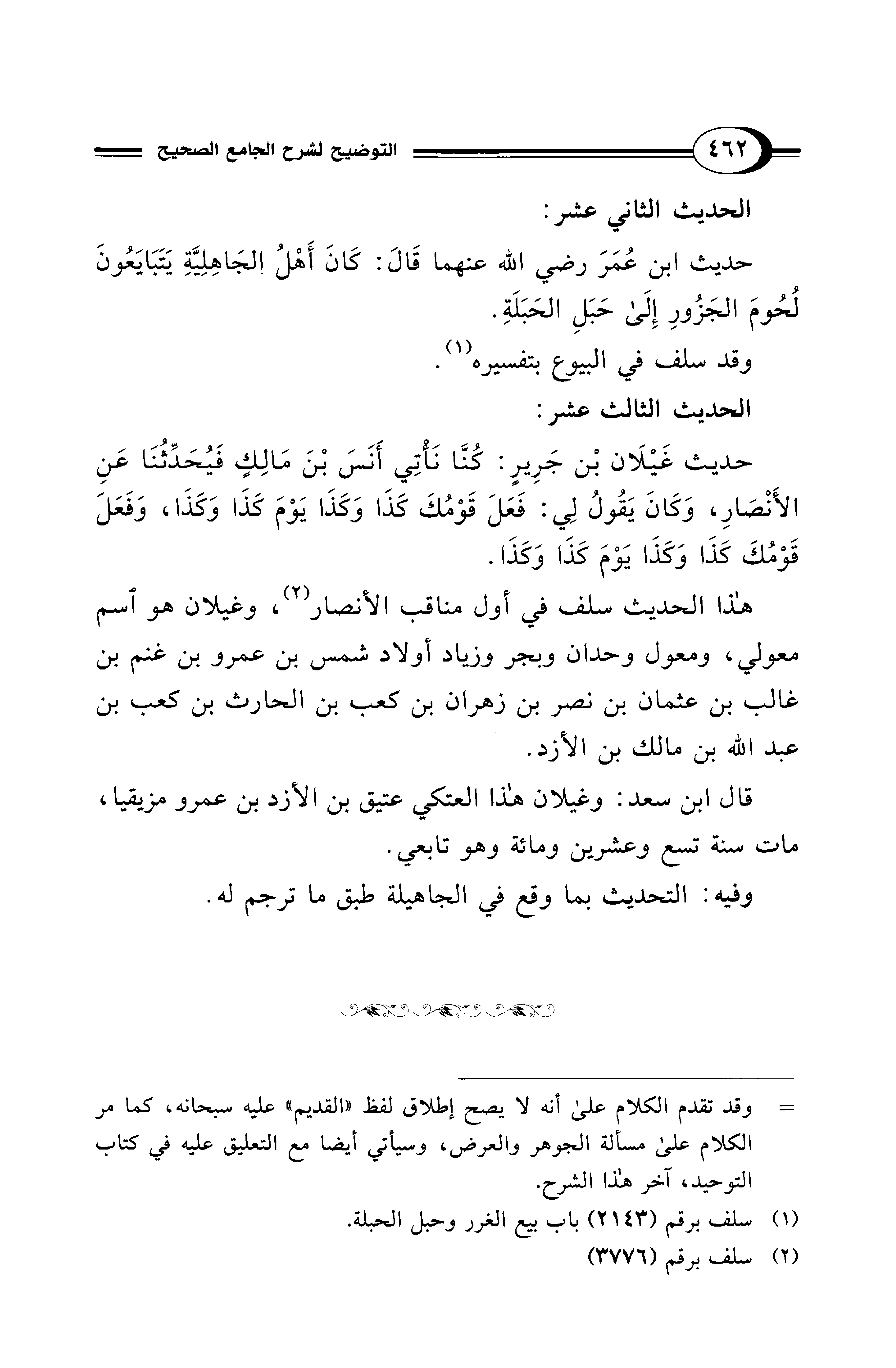 حديث ابن عُمَرَ رضي الله عنهما قَالَ: كَانَ أَهْلُ الجَاهِلِيَّةِ يَتَبَايَعُونَ لُحُومَ الجَزُورِ إلى حَبَلِ الحَبَلَةِ.