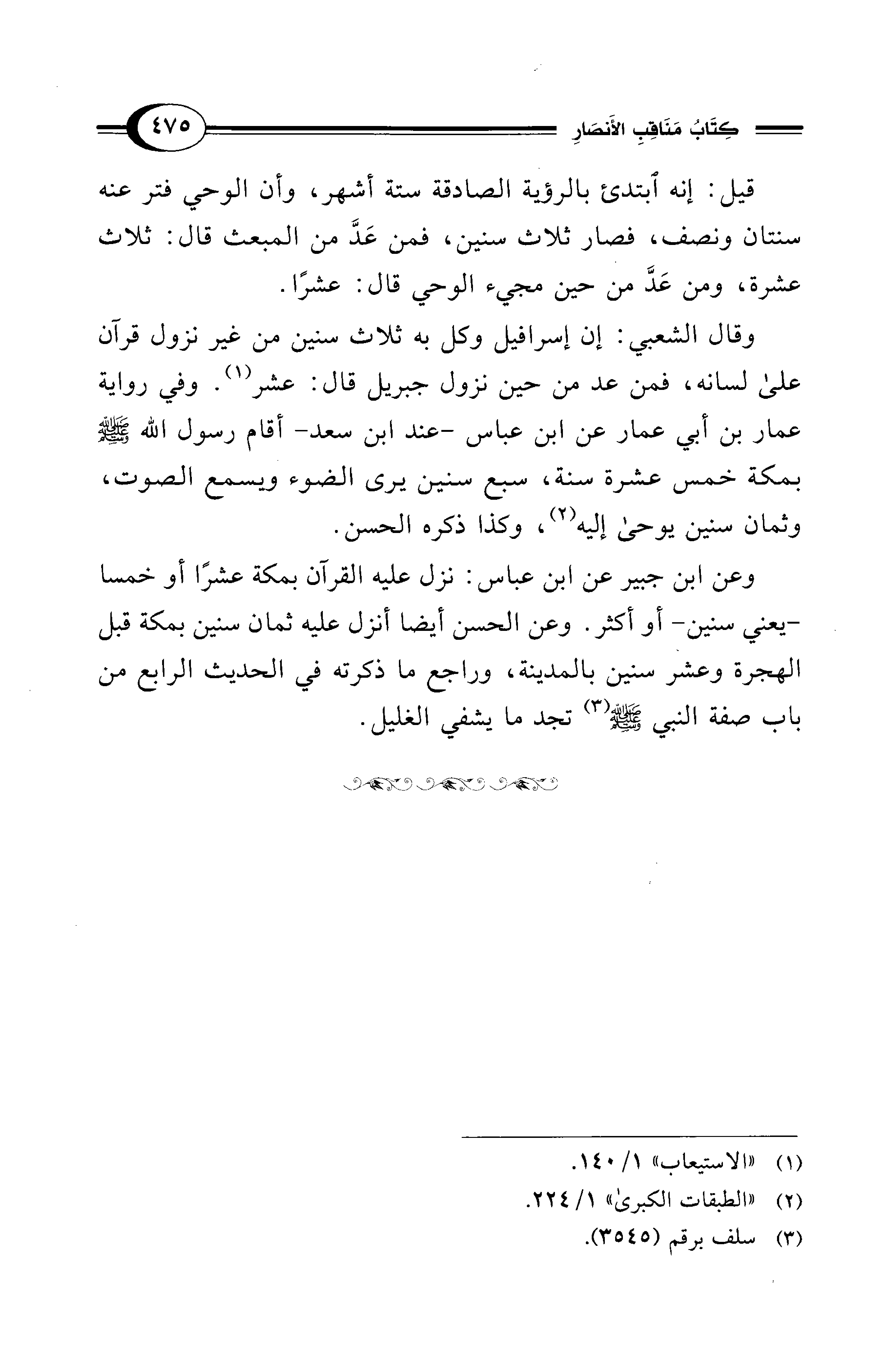 وقال الشعبي: إن إسرافيل وكل به ثلاث سنين من غير نزول قرآن على لسانه، فمن عد من حين نزول جبريل قال: عشر (¬1). وفي رواية عمار بن أبي عمار عن ابن عباس- عند ابن سعد- أقام رسول الله - صلى الله عليه وسلم - بمكة خمس عشرة سنة، سبع سنين يرى الضوء ويسمع الصوت، وثمان سنين يوحى إليه (¬2)، وكذا ذكره الحسن.