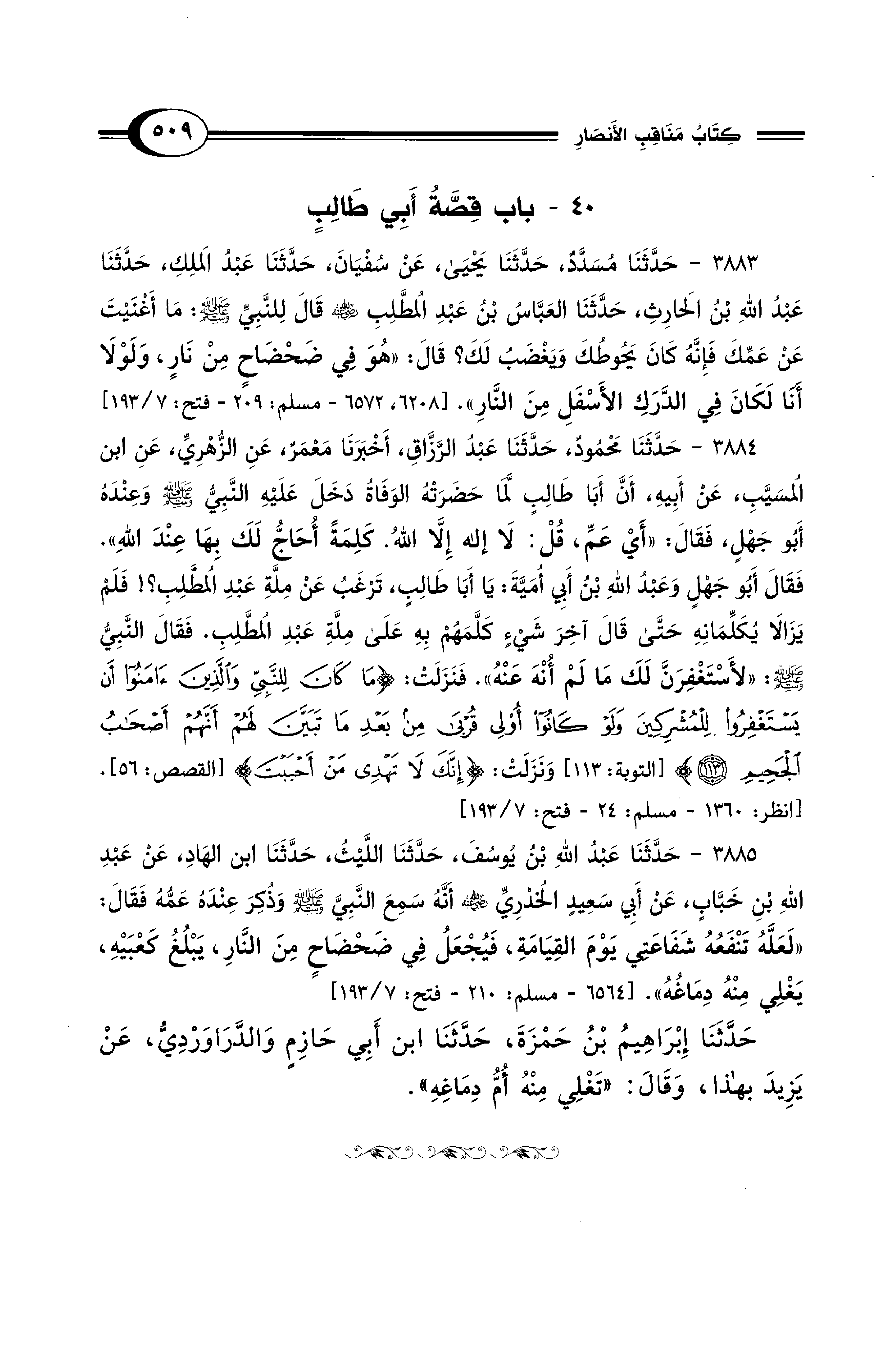 40 - باب قِصَّةُ أَبِي طَالِبٍ