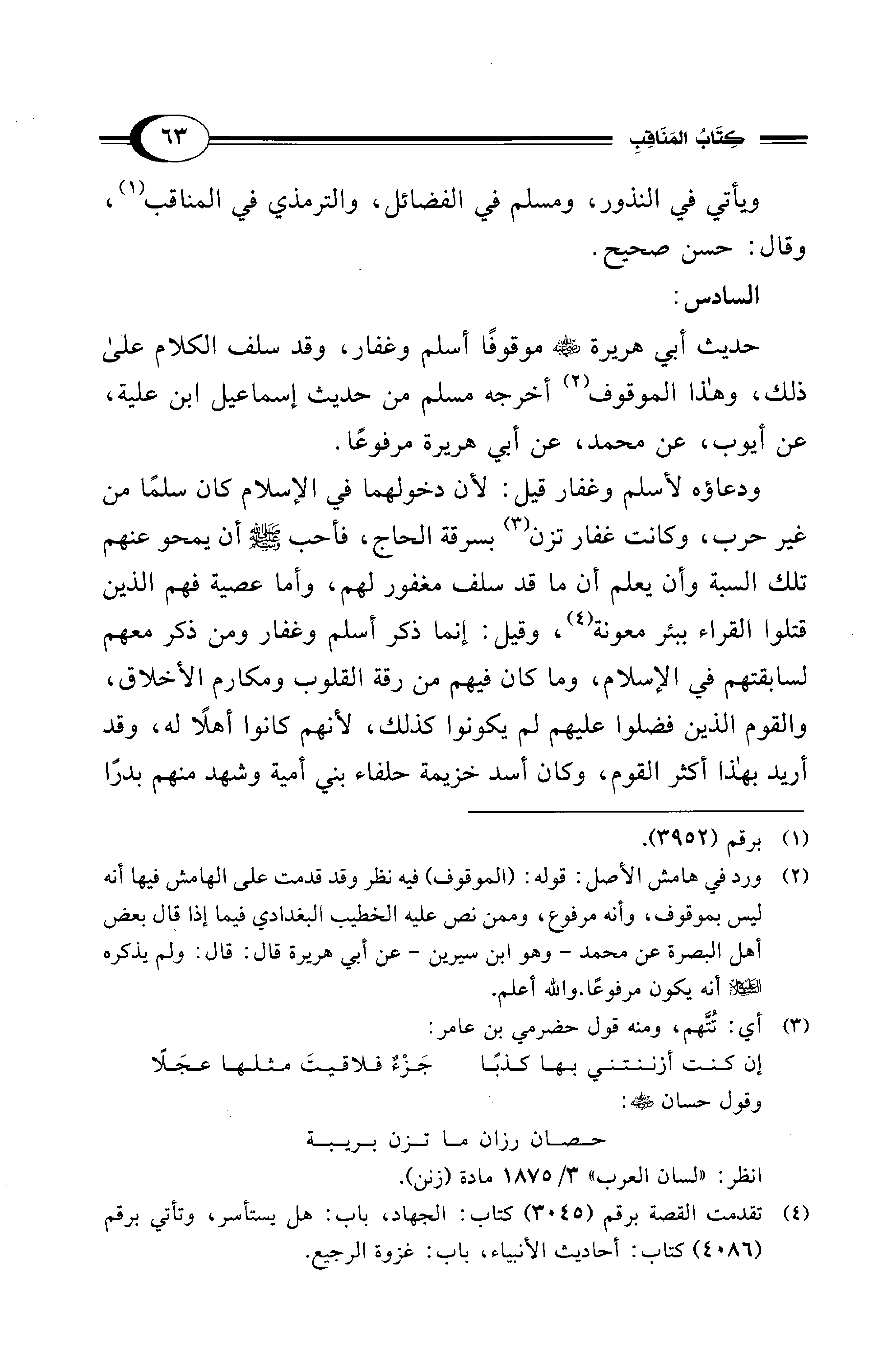 حديث أبي هريرة - رضي الله عنه - موقوفًا أسلم وغفار، وقد سلف الكلام على ذلك، وهذا الموقوف (¬2) أخرجه مسلم من حديث إسماعيل ابن علية، عن أيوب، عن محمد، عن أبي هريرة مرفوعًا.