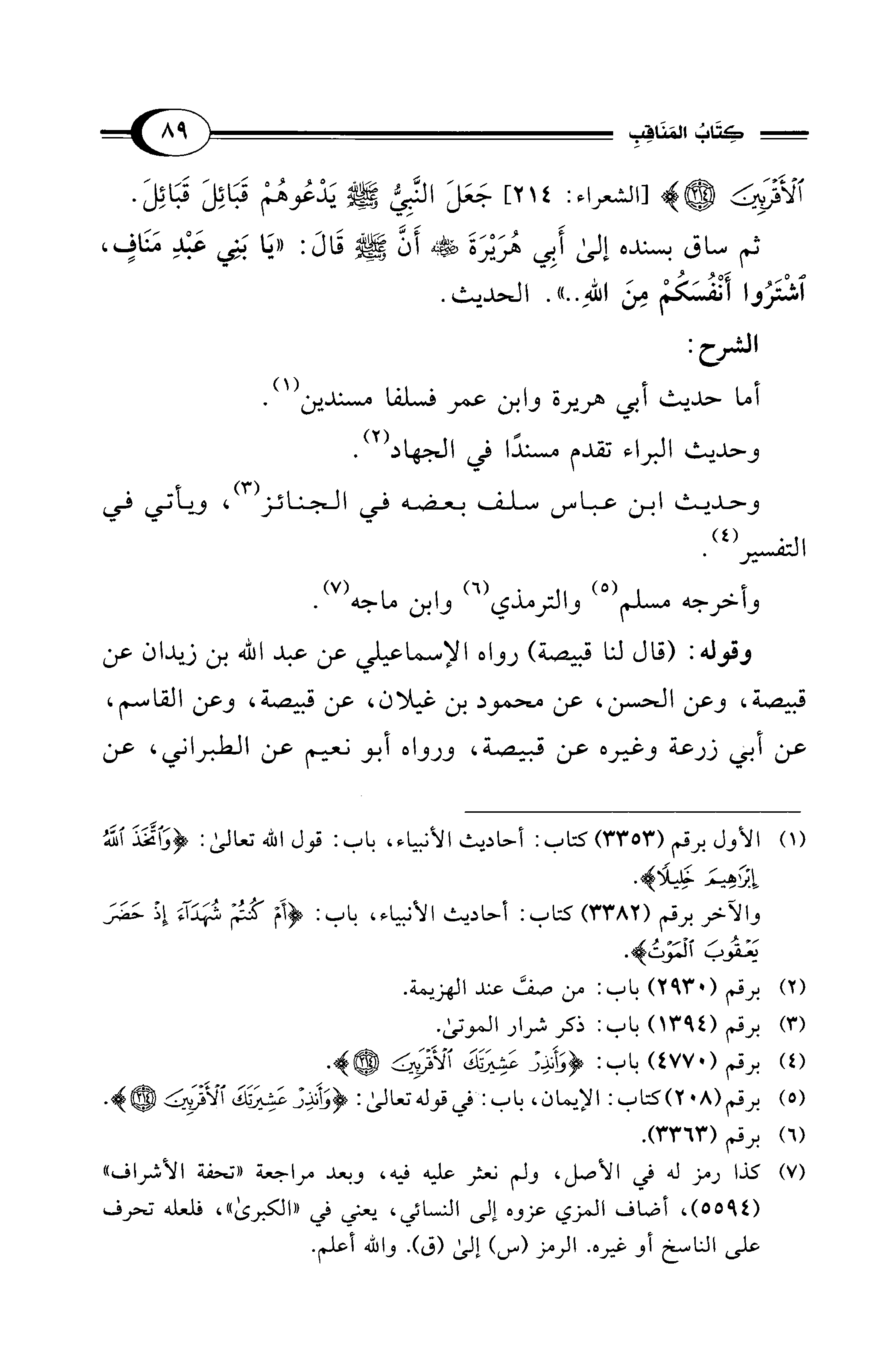 (¬5) برقم (208) كتاب: الإيمان, باب: في قوله تعالى: {وَأَنْذِرْ عَشِيرَتَكَ الْأَقْرَبِينَ (214)}.