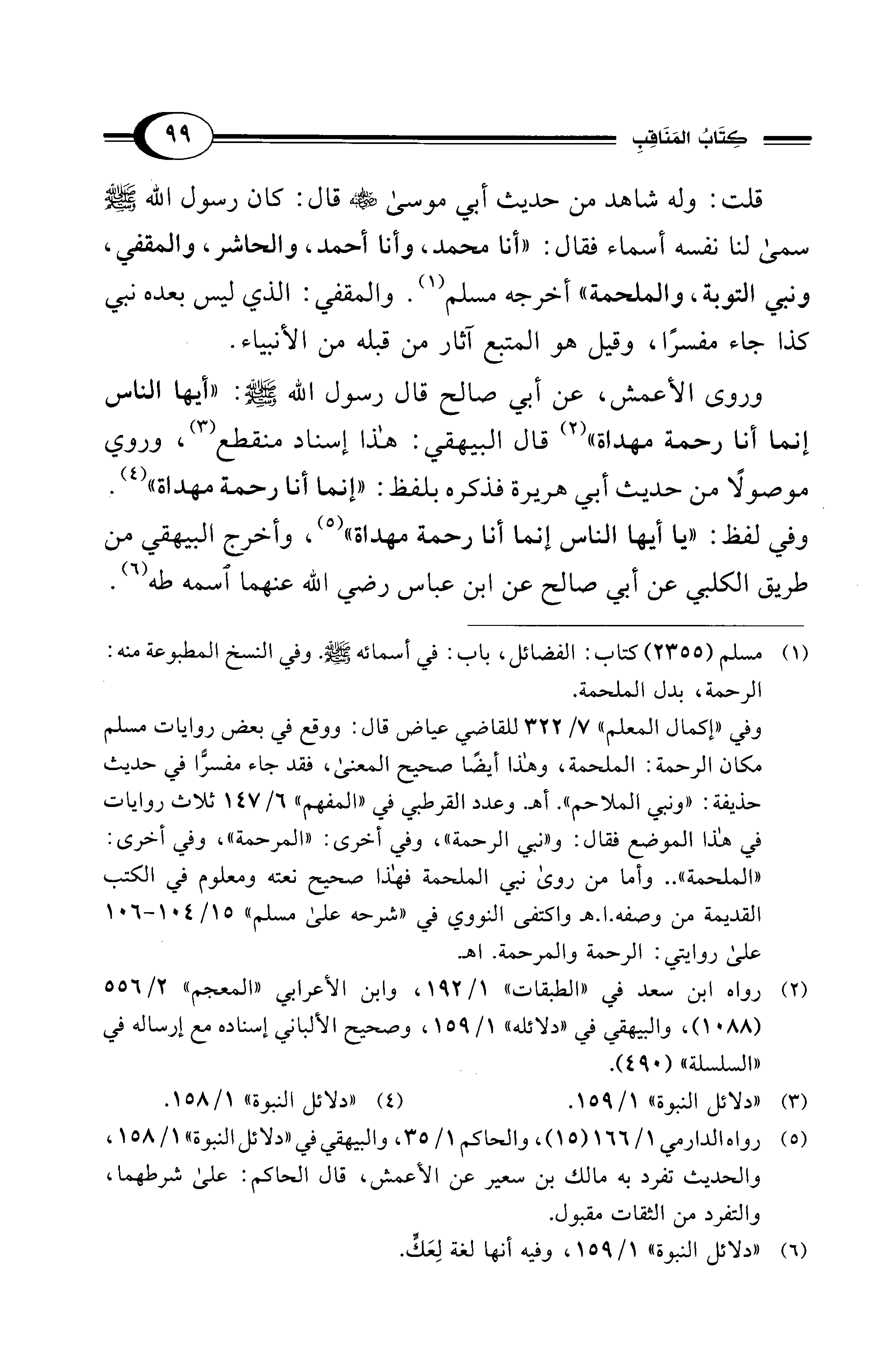 (¬1) مسلم (2355) كتاب: الفضائل، باب: في أسمائه - صلى الله عليه وسلم -. وفي النسخ المطبوعة منه: الرحمة، بدل الملحمة.