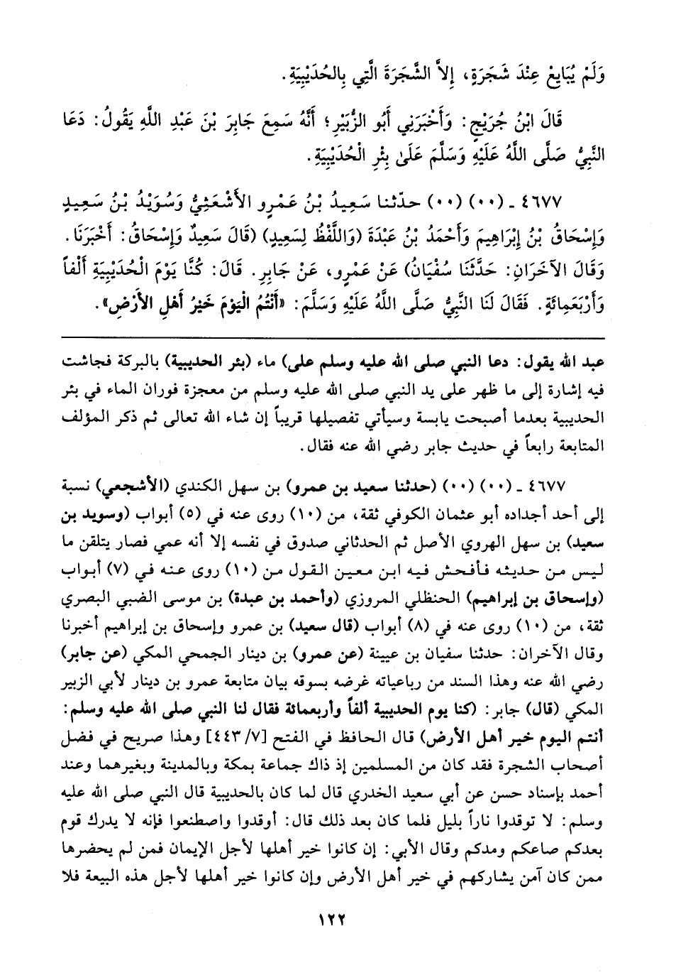 ٤٦٧٧ - (٠٠) (٠٠) حدَّثنا سَعِيدُ بْنُ عَمْرٍو الأَشْعَثِيُّ وَسُويدُ بْنُ سَعِيدٍ وَإِسْحَاقُ بْنُ إِبْرَاهِيمَ وَأَحْمَدُ بْنُ عَبْدَةَ (وَاللَّفْظُ لِسَعِيدٍ) (قَال سَعِيدٌ وَإِسْحَاقُ: أَخْبَرَنَا. وَقَال الآخَرَانِ: حَدَّثَنَا سُفْيَانُ) عَنْ عَمْرٍو، عَنْ جَابِرٍ. قَال: كُنَّا يَوْمَ الْحُدَيبِيَةِ أَلْفًا وَأَرْبَعَمِائَةٍ. فَقَال لنَا النَّبِيِّ صَلَّى اللهُ عَلَيهِ وَسَلَّمَ: "أَنْتُمُ الْيَوْمَ خَيرُ أَهْلِ الأَرْضِ"