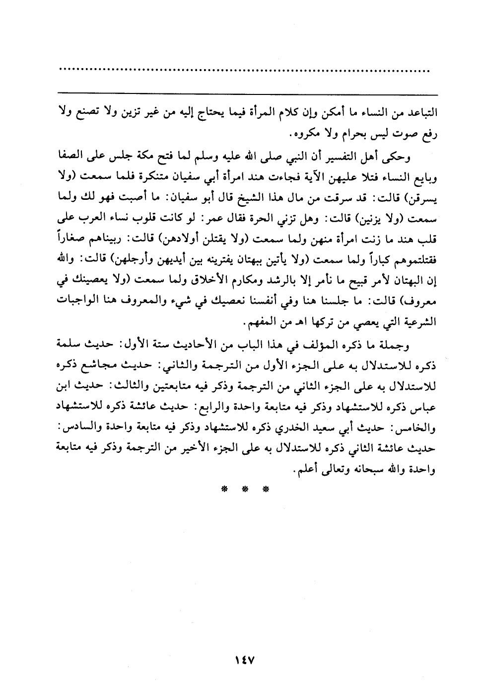 وجملة ما ذكره المؤلف في هذا الباب من الأحاديث ستة الأول: حديث سلمة ذكره للاستدلال به على الجزء الأول من الترجمة والثاني: حديث مجاشع ذكره للاستدلال به على الجزء الثاني من الترجمة وذكر فيه متابعتين والثالث: حديث ابن عباس ذكره للاستشهاد وذكر فيه متابعة واحدة والرابع: حديث عائشة ذكره للاستشهاد والخامس: حديث أبي سعيد الخدري ذكره للاستشهاد وذكر فيه متابعة واحدة والسادس: حديث عائشة الثاني ذكره للاستدلال به على الجزء الأخير من الترجمة وذكر فيه متابعة واحدة والله سبحانه وتعالى أعلم.