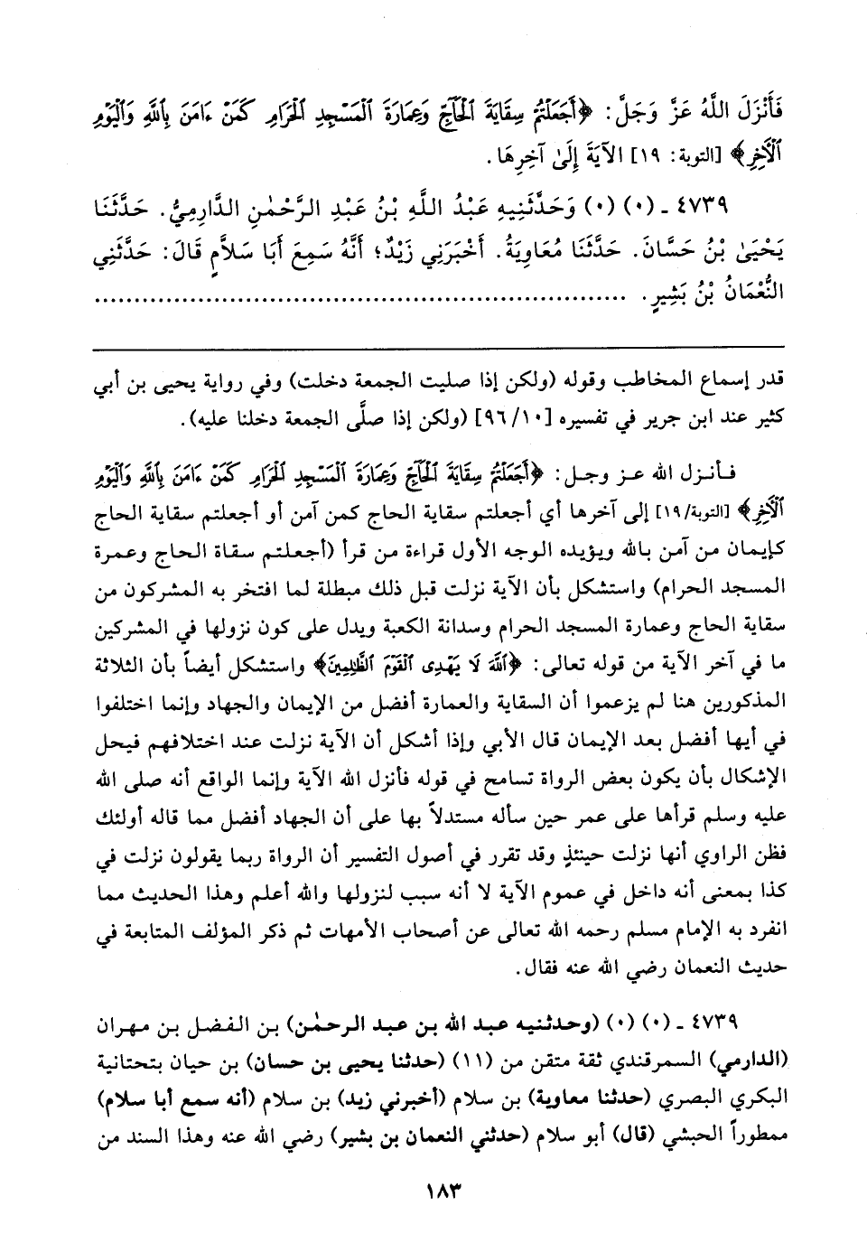 ٤٧٣٩ - (٠) (٠) (وحدثنيه عبد الله بن عبد الرحمن) بن الفضل بن مهران (الدارمي) السمرقندي ثقة متقن من (١١) (حدثنا يحيى بن حسان) بن حيان بتحتانية البكري البصري (حدثنا معاوية) بن سلام (أخبرني زيد) بن سلام (أنه سمع أبا سلام) ممطورًا الحبشي (قال) أبو سلام (حدثني النعمان بن بشير) رضي الله عنه وهذا السند من