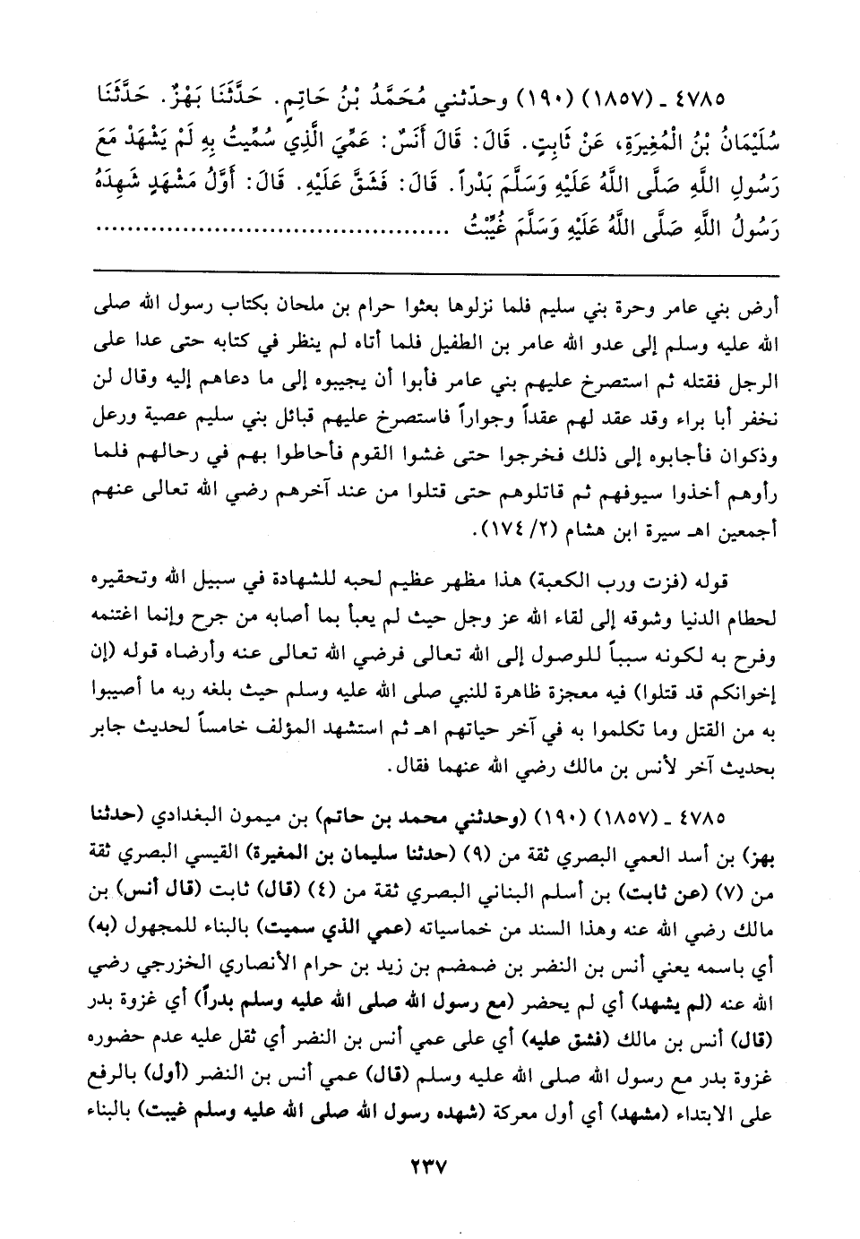 ٤٧٨٥ - (١٨٥٧) (١٩٠) وحدّثني مُحَمَّدُ بْنُ حَاتِمٍ. حَدَّثَنَا بَهْزٌ. حَدَّثَنَا سُلَيمَانُ بْنُ الْمُغِيرَةِ، عَنْ ثَابِتٍ. قَال: قَال أَنَسٌ: عَمِّيَ الَّذِي سُمِّيتُ بِهِ لَمْ يَشْهَدْ مَعَ رَسُولِ اللَّهِ صَلَّى اللهُ عَلَيهِ وَسَلَّمَ بَدْرًا. قَال: فَشَقَّ عَلَيهِ. قَال: أوَّلُ مَشْهَدٍ شَهِدَهُ رَسُولُ الله صَلَّى اللهُ عَلَيهِ وَسَلَّمَ غُيِّبْتُ