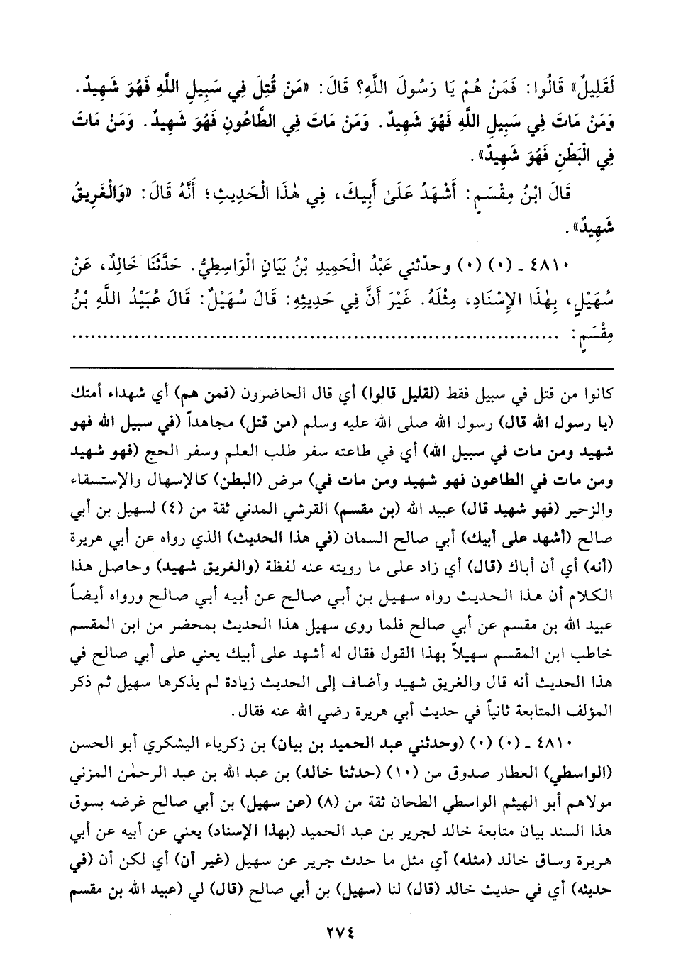 لَقَلِيلٌ" قَالُوا: فَمَنْ هُمْ يَا رَسُولَ اللهِ؟ قَال: "مَنْ قُتِلَ فِي سَبِيلِ اللهِ فَهُوَ شَهِيدٌ. وَمَنْ مَاتَ فِي سَبِيلِ اللهِ فَهُوَ شَهِيدٌ. وَمَنْ مَاتَ فِي الطَّاعُونِ فَهُوَ شَهِيدٌ. وَمَنْ مَاتَ فِي الْبَطْنِ فَهُوَ شَهِيدٌ".