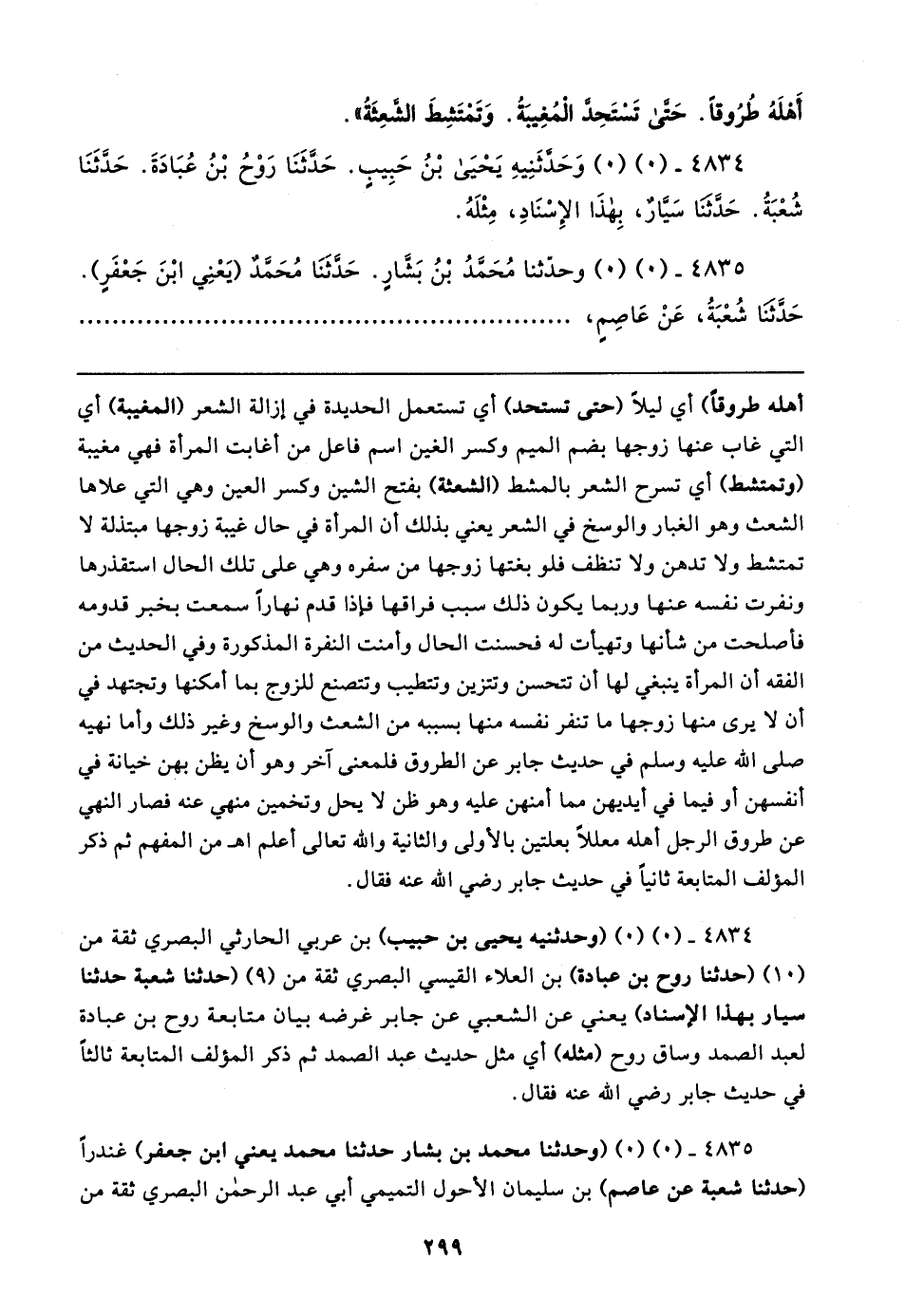 ٤٨٣٤ - (٠) (٠) (وحدثنيه يحيى بن حبيب) بن عربي الحارثي البصري ثقة من (١٠) (حدثنا روح بن عبادة) بن العلاء القيسي البصري ثقة من (٩) (حدثنا شعبة حدثنا سيار بهذا الإسناد) يعني عن الشعبي عن جابر غرضه بيان متابعة روح بن عبادة لعبد الصمد وساق روح (مثله) أي مثل حديث عبد الصمد ثم ذكر المؤلف المتابعة ثالثًا في حديث جابر رضي الله عنه فقال.