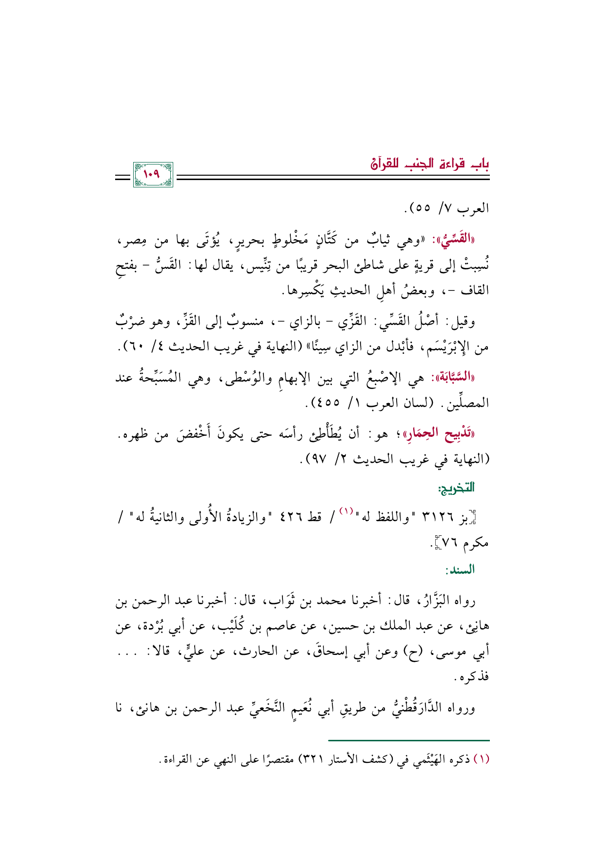 (¬١) ذكره الهَيْثَمي في (كشف الأستار ٣٢١) مقتصرًا على النهي عن القراءة.