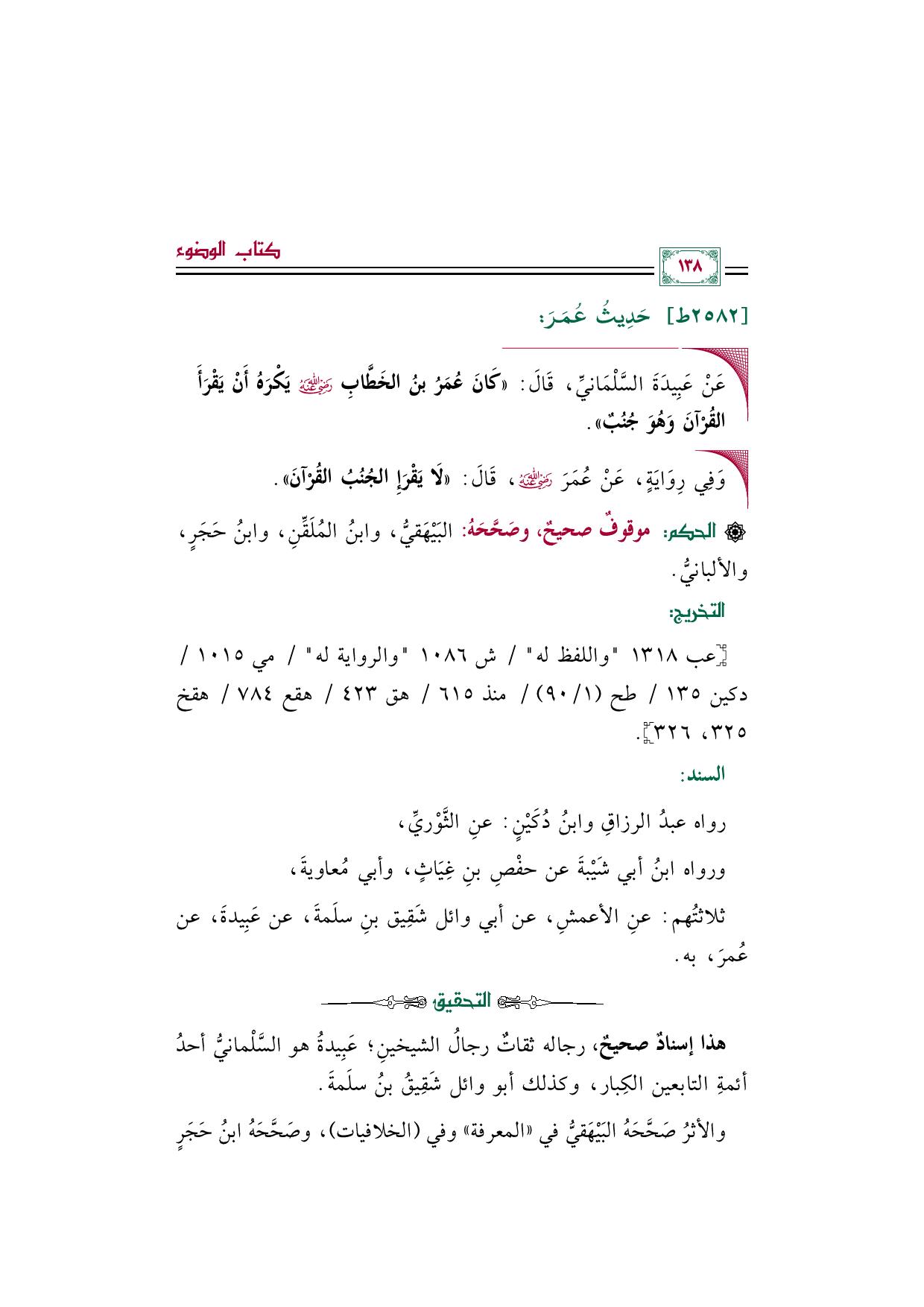 والأثرُ صَحَّحَهُ البَيْهَقيُّ في ((المعرفة)) وفي (الخلافيات)، وصَحَّحَهُ ابنُ