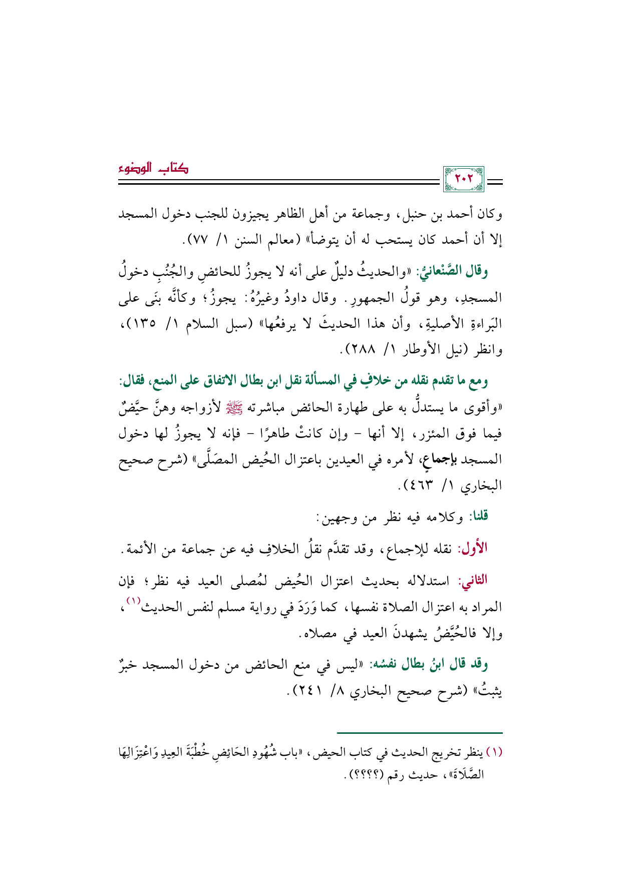 (¬١) ينظر تخريج الحديث في كتاب الحيض، "باب شُهُودِ الحَائِضِ خُطْبَةَ العِيدِ وَاعْتِزَالِهَا الصَّلَاةَ"، حديث رقم (؟ ؟ ؟ ؟ ).