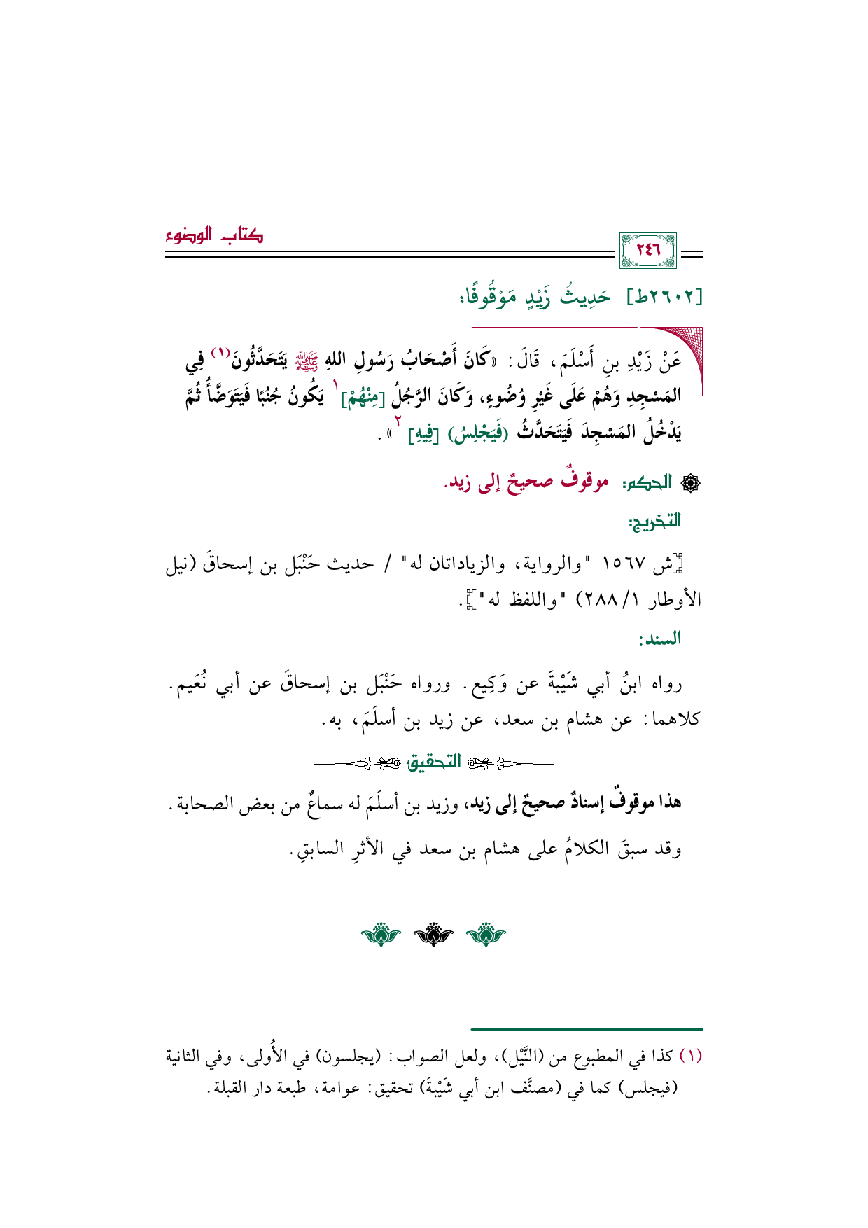 رواه ابنُ أبي شَيْبةَ عن وَكِيع. ورواه حَنْبَل بن إسحاقَ عن أبي نُعَيم. كلاهما: عن هشام بن سعد، عن زيد بن أسلَمَ، به.