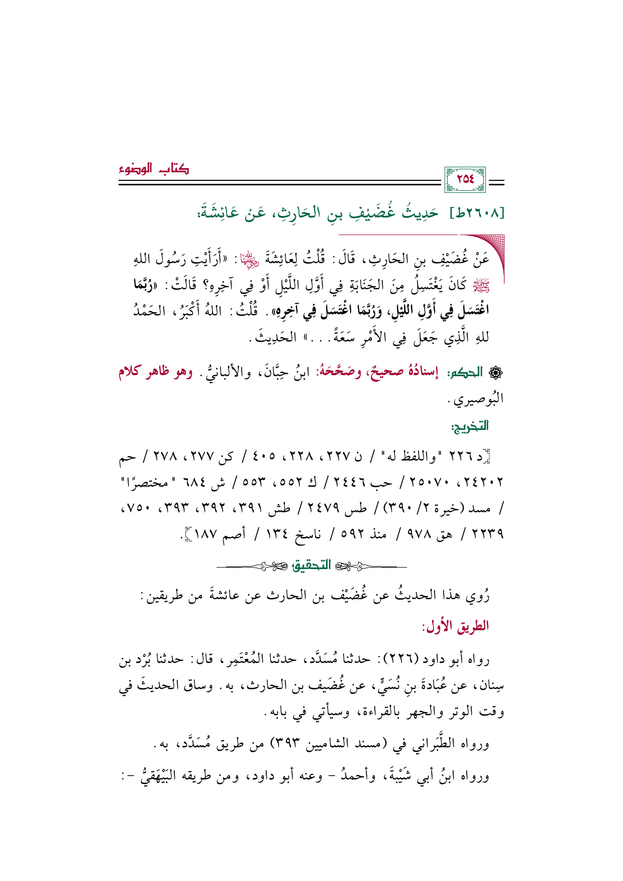 رواه أبو داود (٢٢٦): حدثنا مُسَدَّد، حدثنا المُعْتَمِر، قال: حدثنا بُرْد بن سِنان، عن عُبَادةَ بنِ نُسَيٍّ، عن غُضَيف بن الحارث، به. وساق الحديثَ في وقت الوتر والجهر بالقراءة، وسيأتي في بابه.
