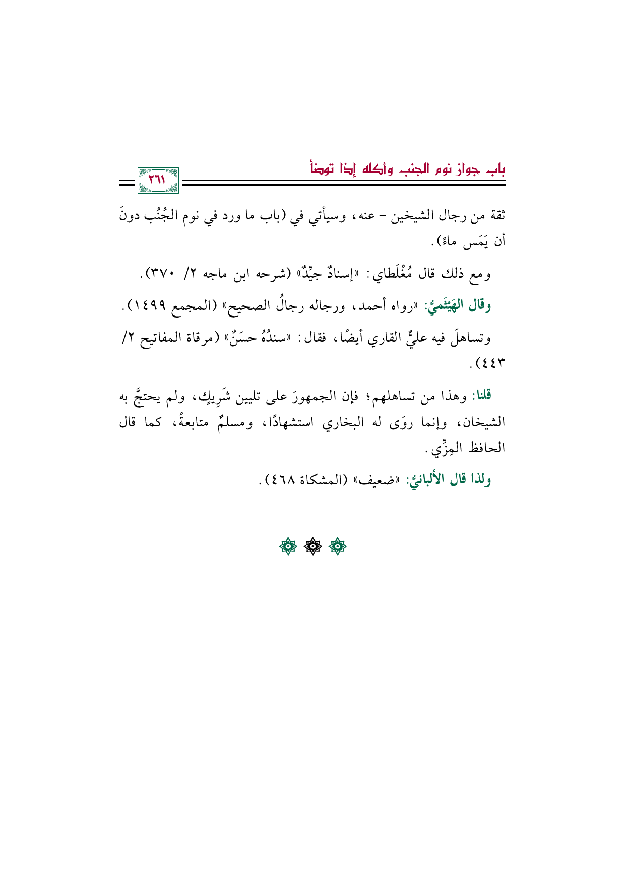 ثقة من رجال الشيخين- عنه، وسيأتي في (باب ما ورد في نوم الجُنُب دونَ أن يَمَس ماءً).