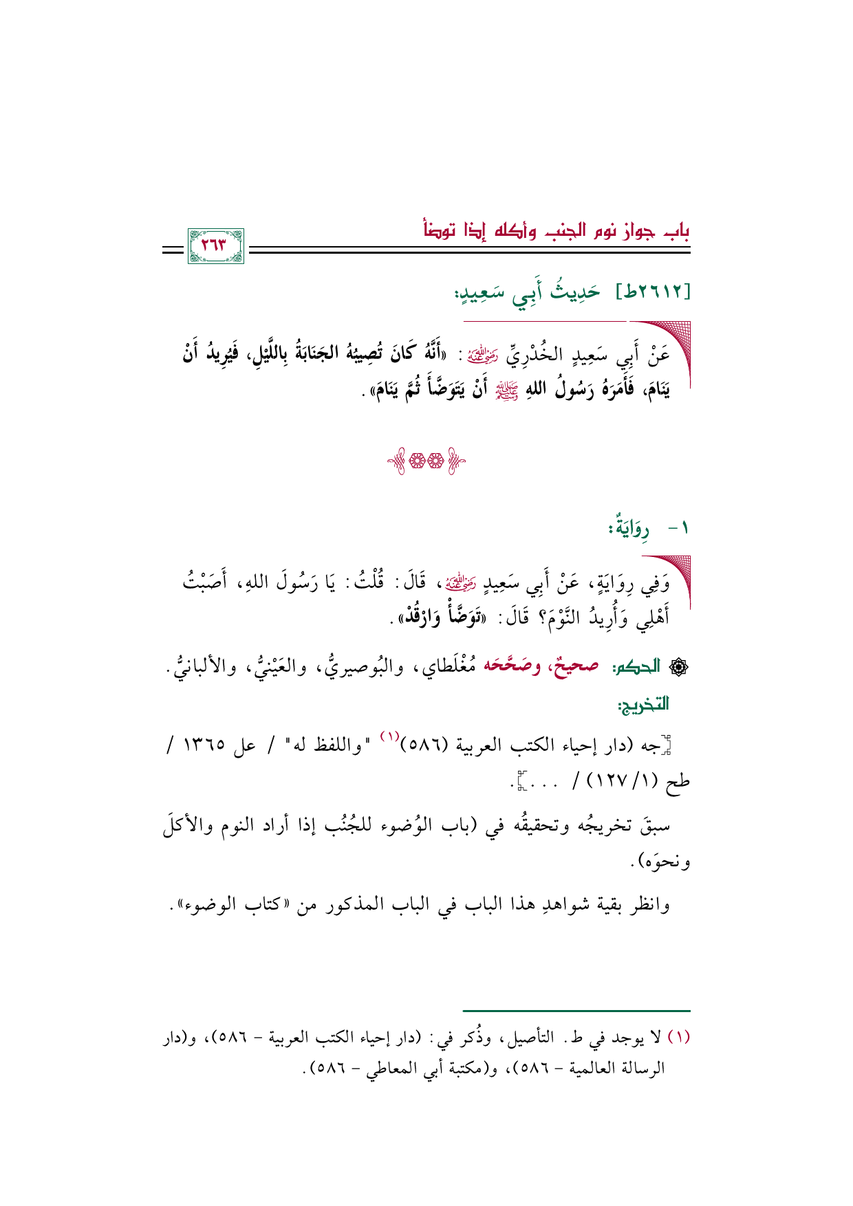 (¬١) لا يوجد في ط. التأصيل، وذُكر في: (دار إحياء الكتب العربية- ٥٨٦)، و (دار الرسالة العالمية- ٥٨٦)، و (مكتبة أبي المعاطي- ٥٨٦).
