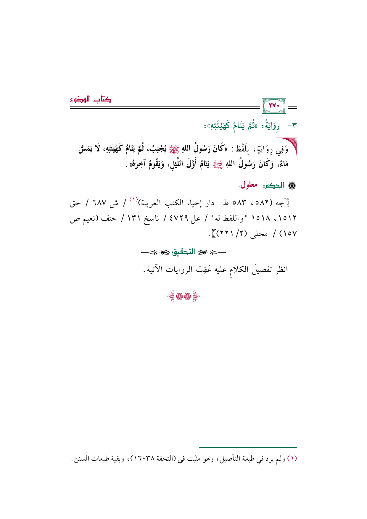 رِوَايَةُ ((ثُمَّ يَنَامُ كَهَيْئَتِهِ)):