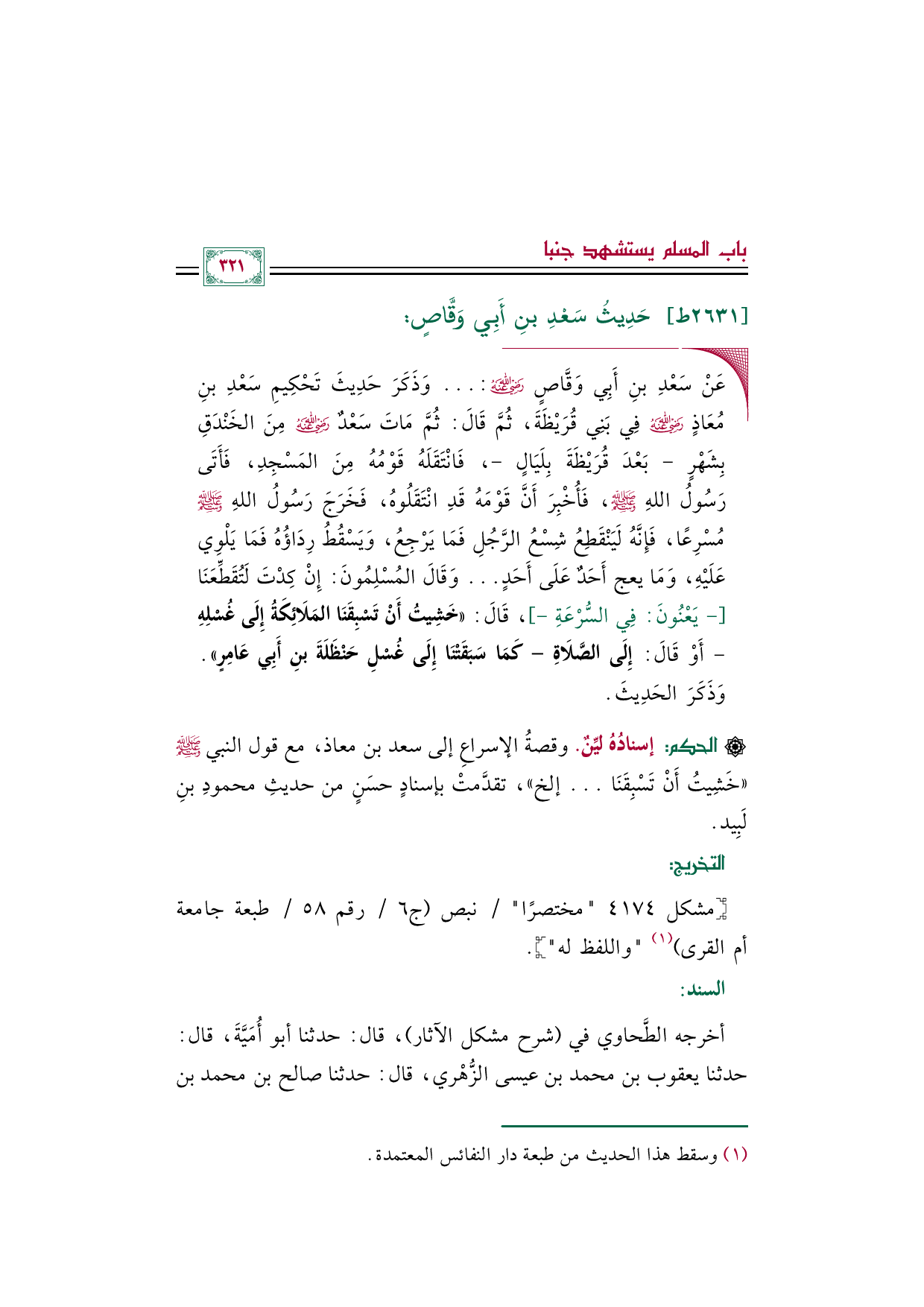 [مشكل ٤١٧٤ مختصرًا / نبص (ج ٦/ رقم ٥٨/ طبعة جامعة أم القرى) (¬١) "واللفظ له"].