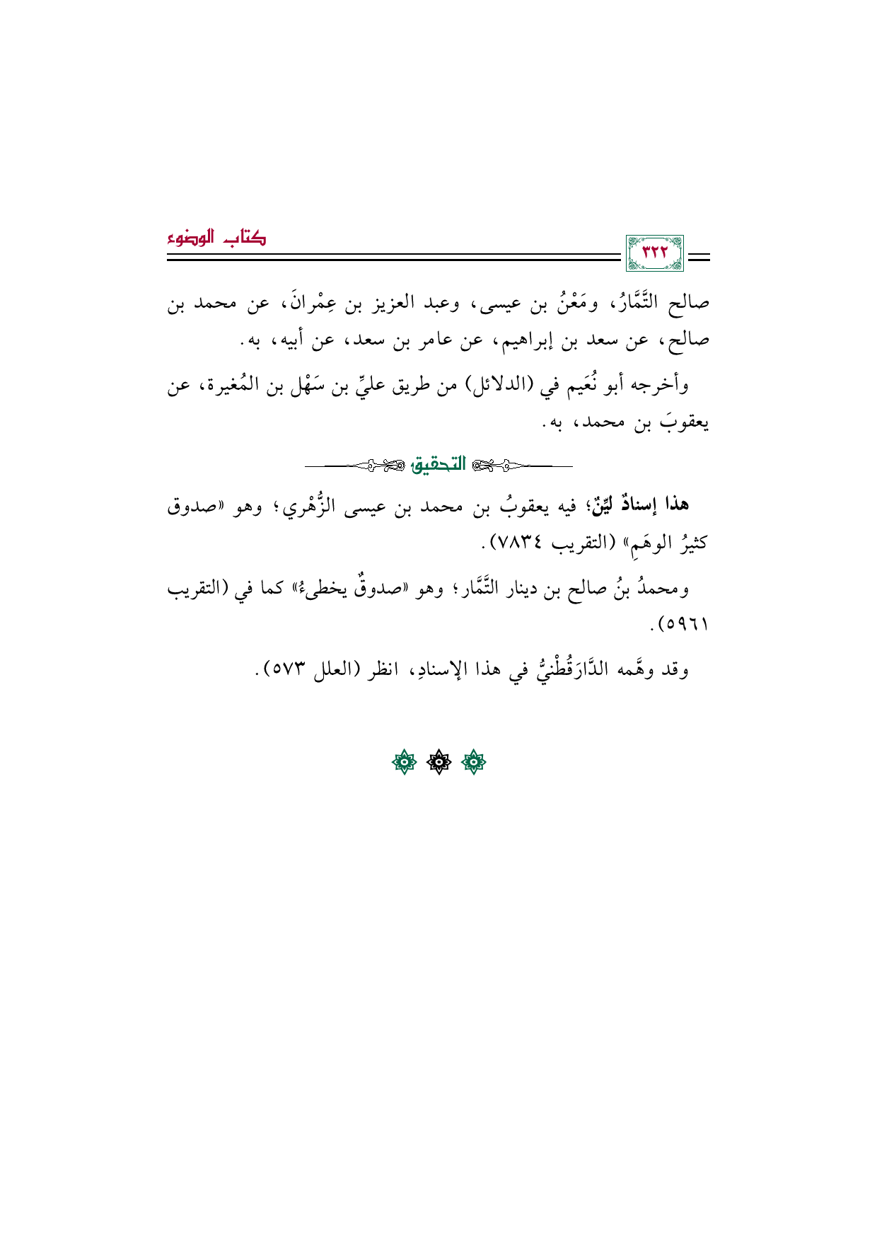صالح التَّمَّارُ، ومَعْنُ بن عيسى، وعبد العزيز بن عِمْرانَ، عن محمد بن صالح، عن سعد بن إبراهيم، عن عامر بن سعد، عن أبيه، به.